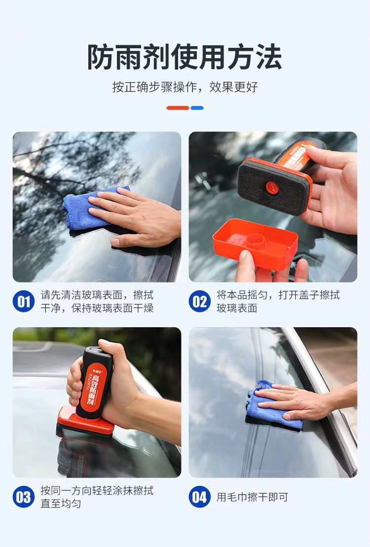 - Performance-Driven Design: Formulated with advanced agents for high-efficiency rainproofing and anti-fogging, significantly improving visibility and driving safety in adverse weather conditions.