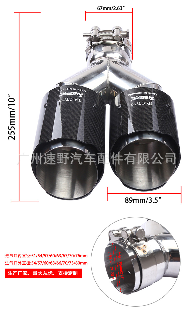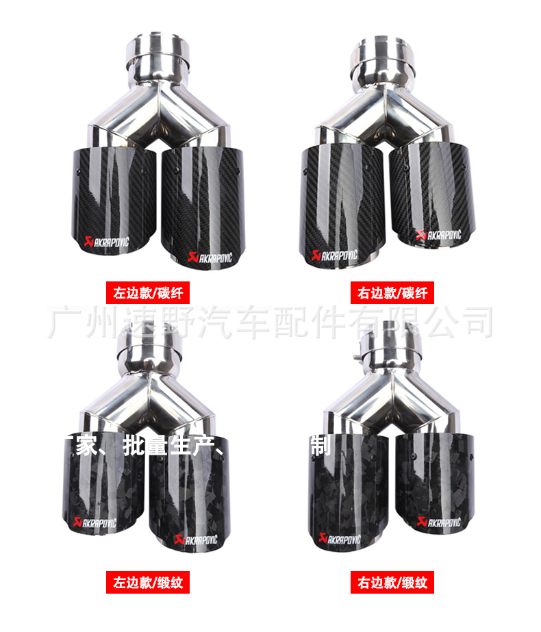 Carbon Fiber & Stainless Steel Dual Exhaust Tip (Outlets: 63-89mm / 2.5-3.5 inch, Y-Type) for Car Exhaust Muffler.