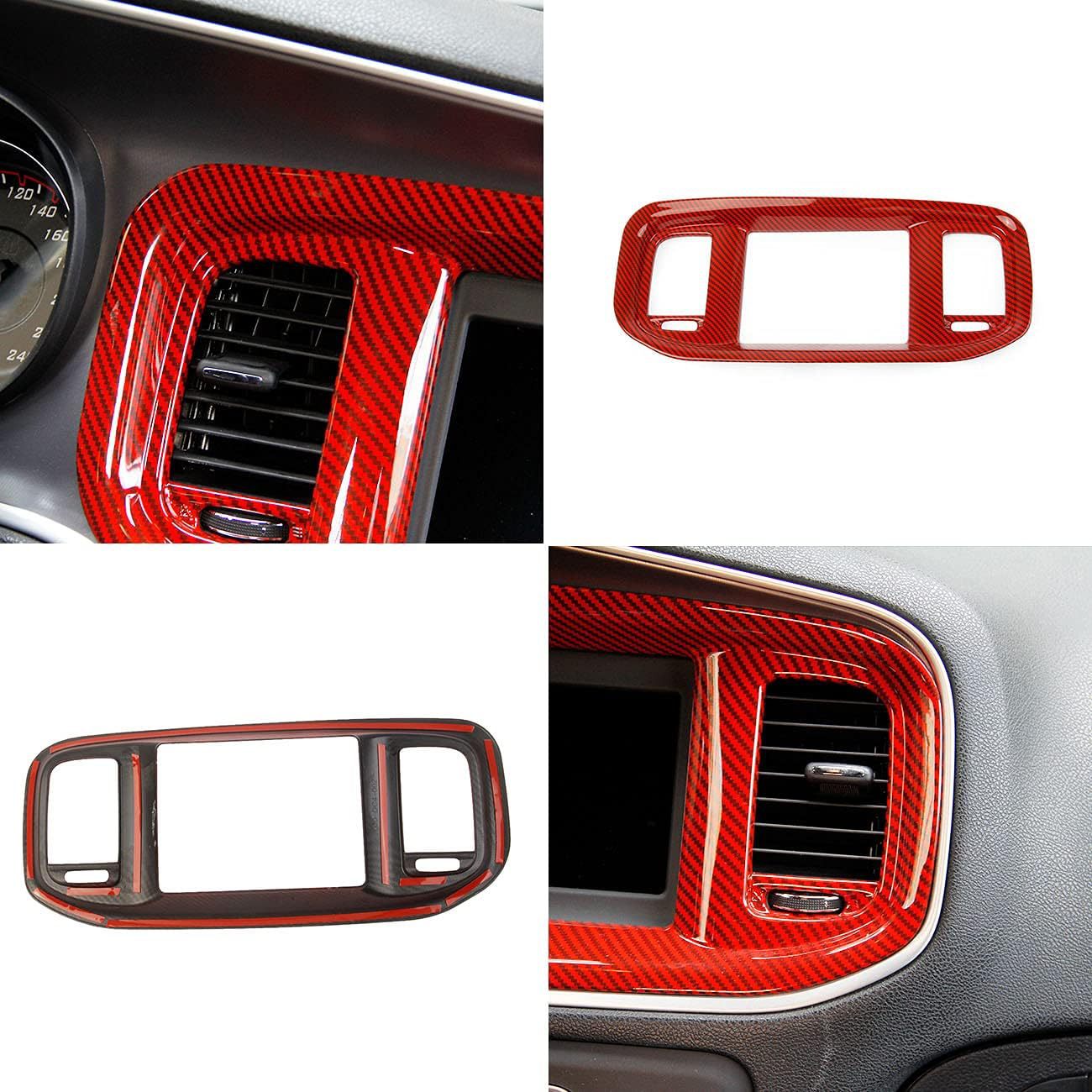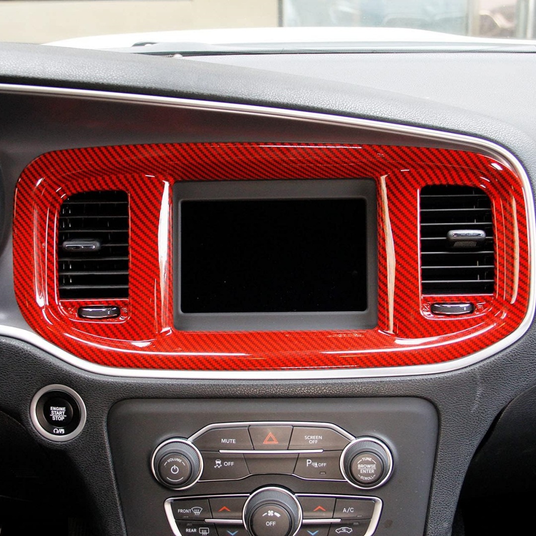 Carbon Fiber / Red Carbon Fiber Central Control Navigation Trim Frame for 2016-2021 Dodge Charger