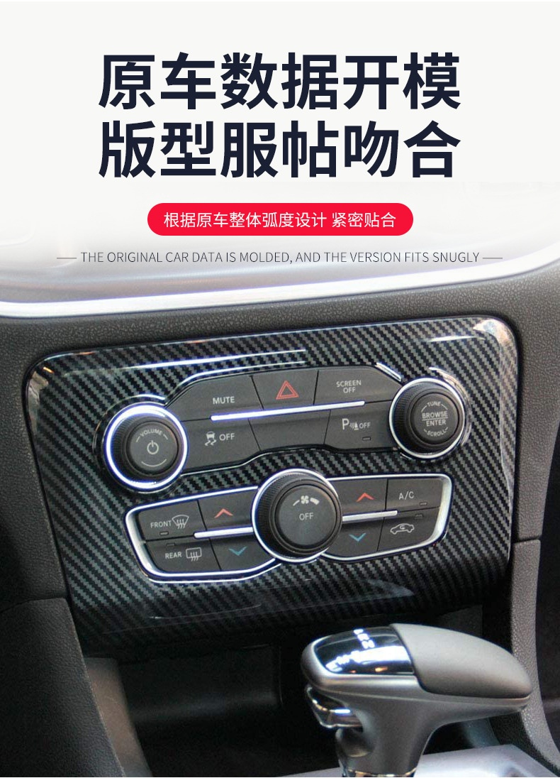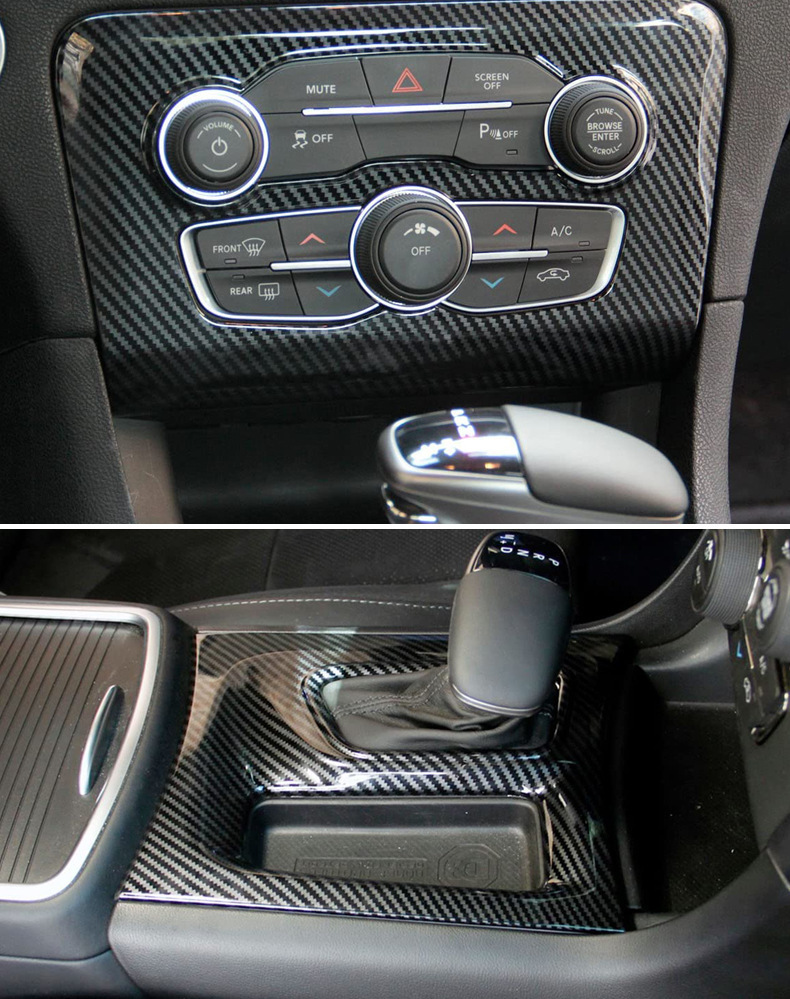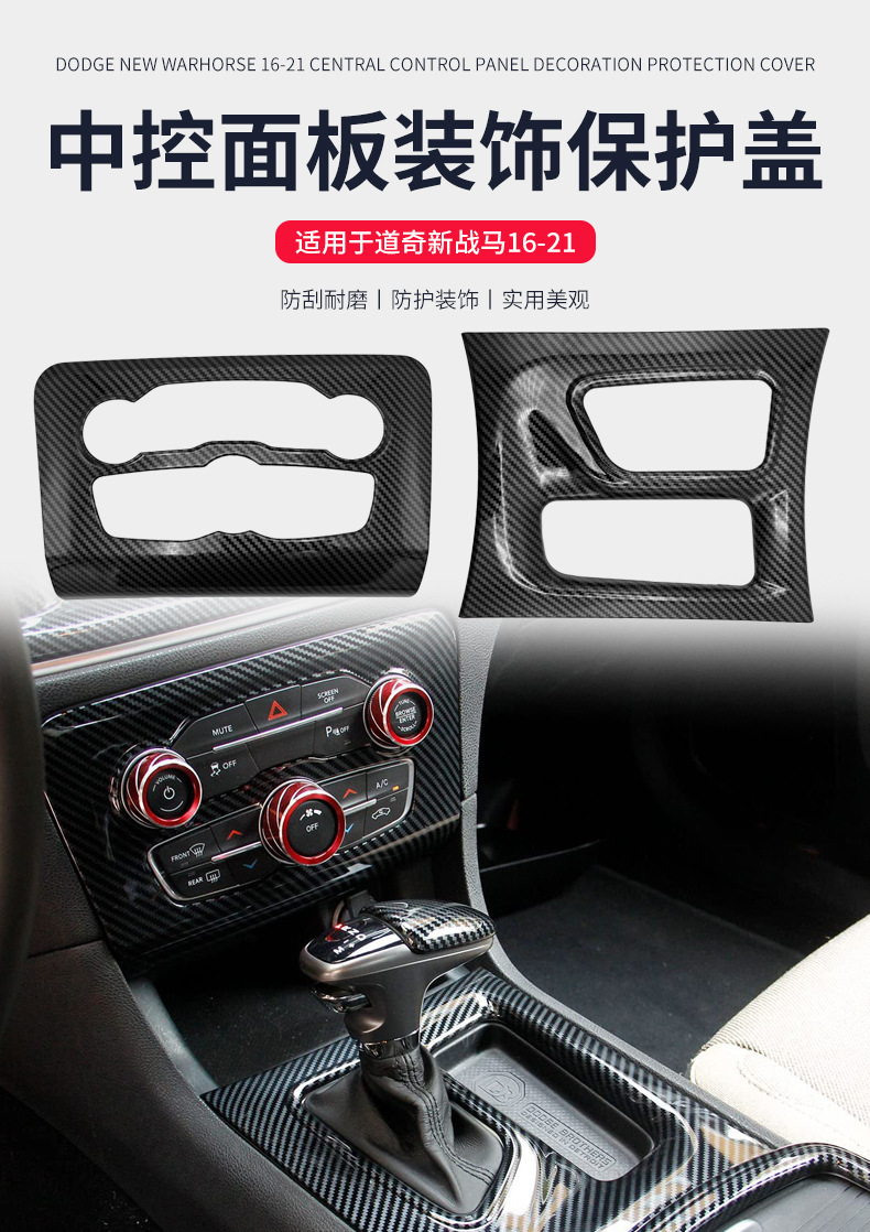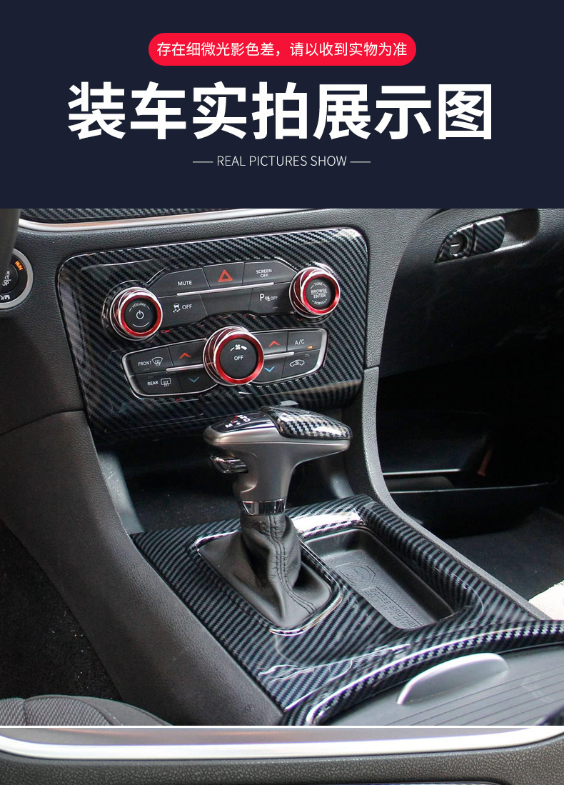 Carbon Fiber ABS Center Console AC Panel Cover Shift Panel Trim Kit for 2016-2021 Dodge Challenger