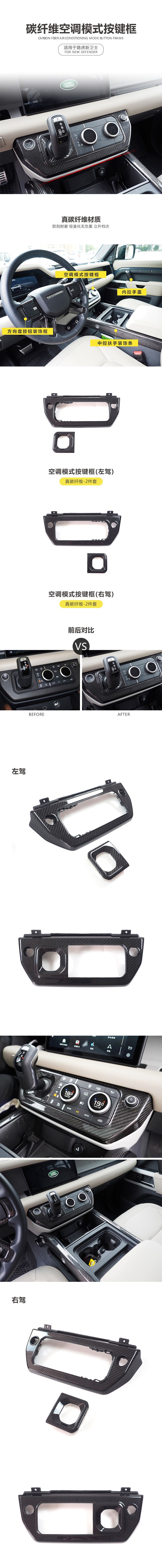 - Package Contents: Includes 1x Carbon Fiber Air Conditioning Mode Button Frame for Land Rover Defender, enhancing both right-hand and left-hand drive configurations with a custom look.