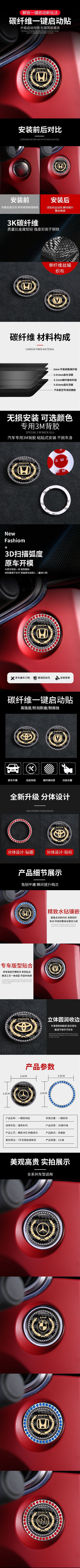 Carbon Fiber Car Engine Start Stop Push Button Cover Trim Ring Decoration for Honda, Hyundai, Nissan, Toyota, Volkswagen, Jeep