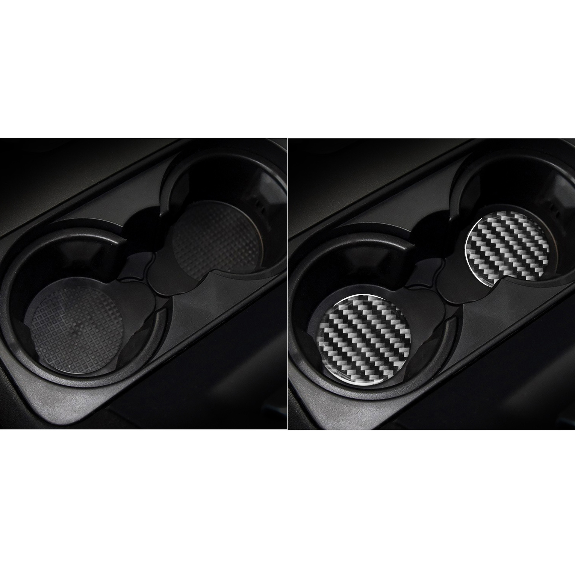 - Package Includes: 1x Carbon Fiber Center Console Water Cup Holder Panel Trim Sticker. A stylish and practical accessory to protect and beautify your vehicle’s interior.