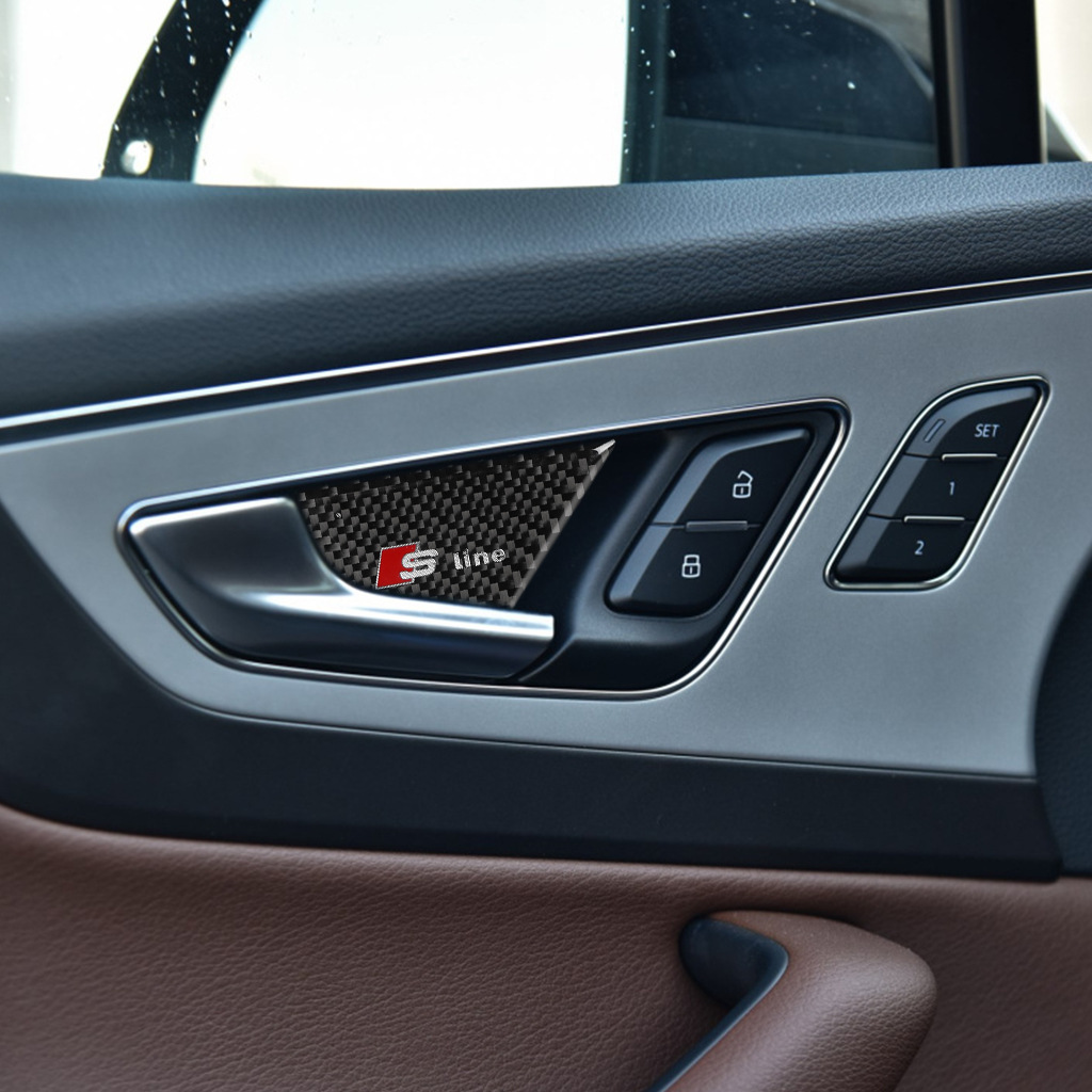 - Package Includes: Each set contains the required carbon fiber interior door handle bowl decorative stickers, providing an instant visual upgrade and protection for your Audi’s interior.