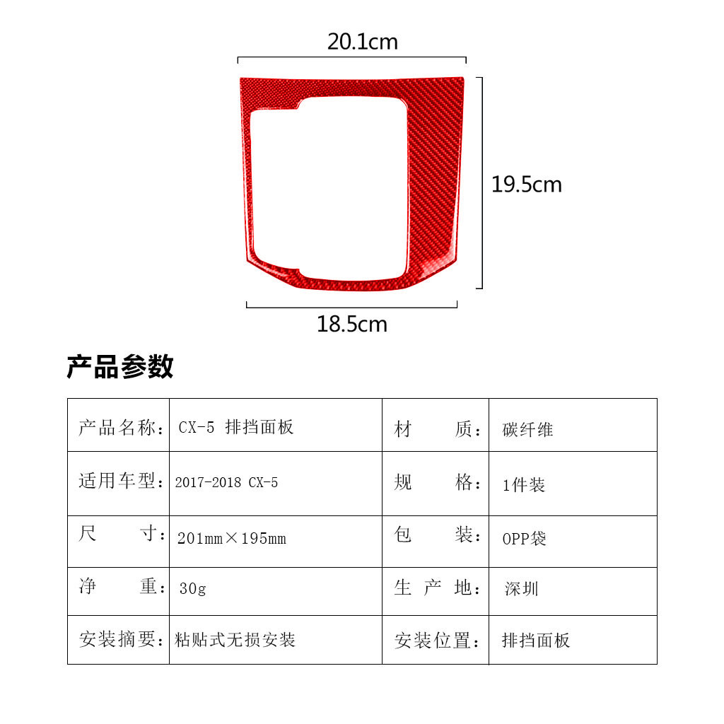 - Package Contents: Includes 1 piece of carbon fiber style center console gear shift panel trim. A perfect interior modification accessory to personalize your Mazda CX-5.