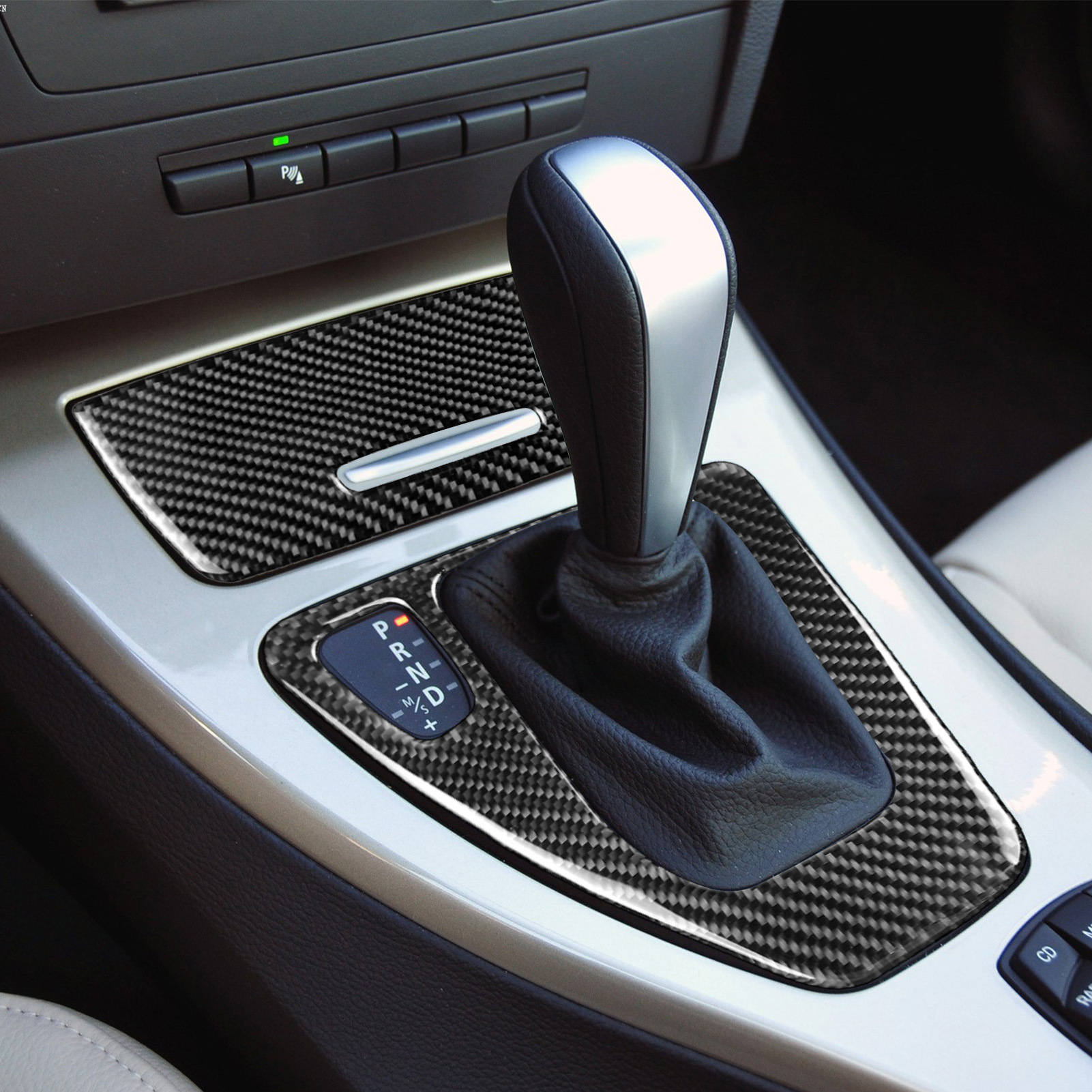 Carbon Fiber Car Interior Trim Shift Knob Gearstick Cover Panel for BMW 3 Series 2005-2012 LHD/RHD