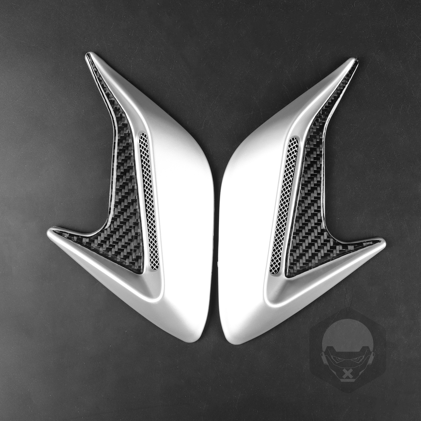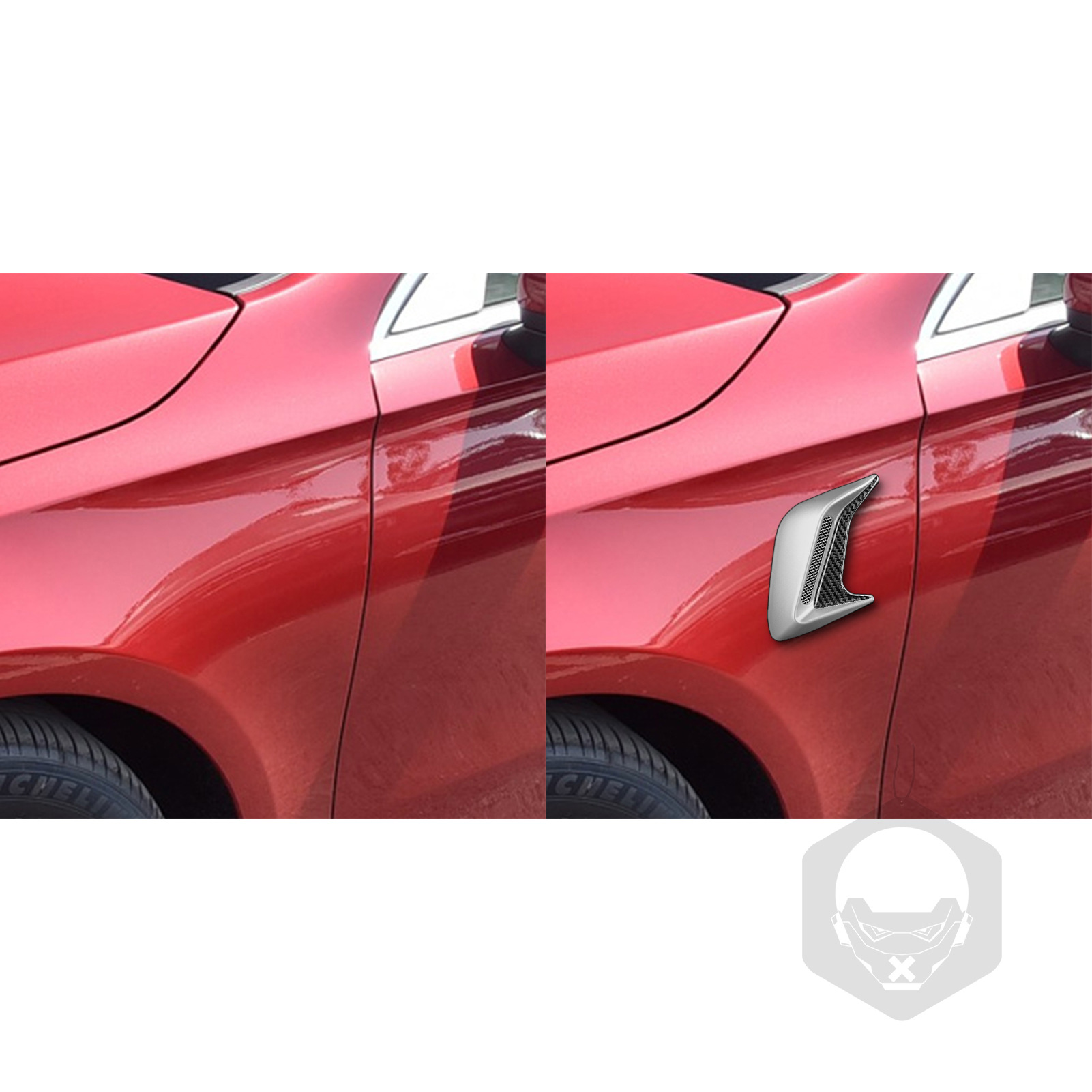 - Enhanced Sporty Appearance: Featuring a sleek shark gill design and a simulated air vent bull horn style, these decorative trims elevate your car’s visual appeal. The carbon fiber finish combined with a glossy silver accent creates a dynamic and aggressive racing-inspired look.