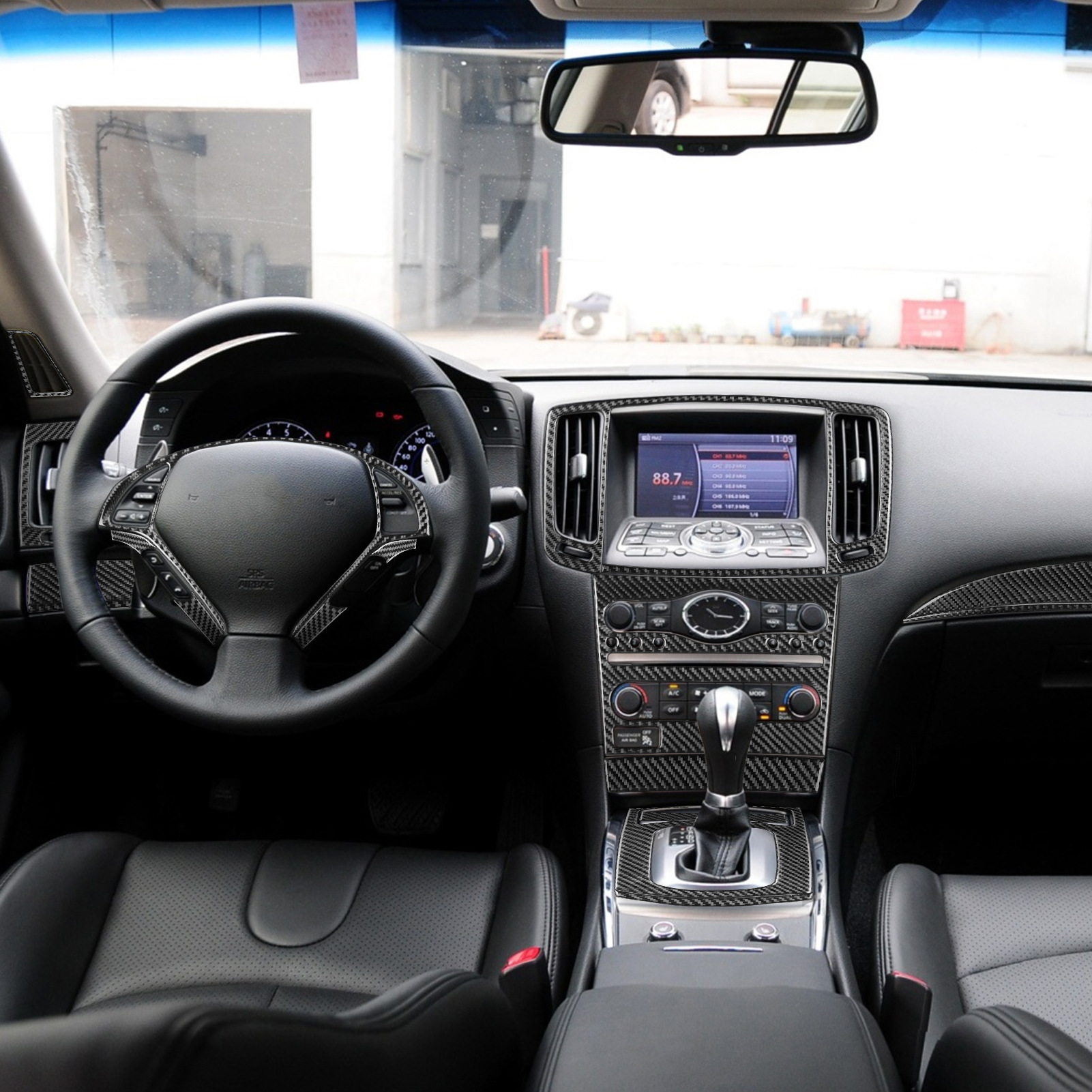 Carbon Fiber Center Console Gear Shift Instrument Panel Trim Cover Kit for Infiniti G37