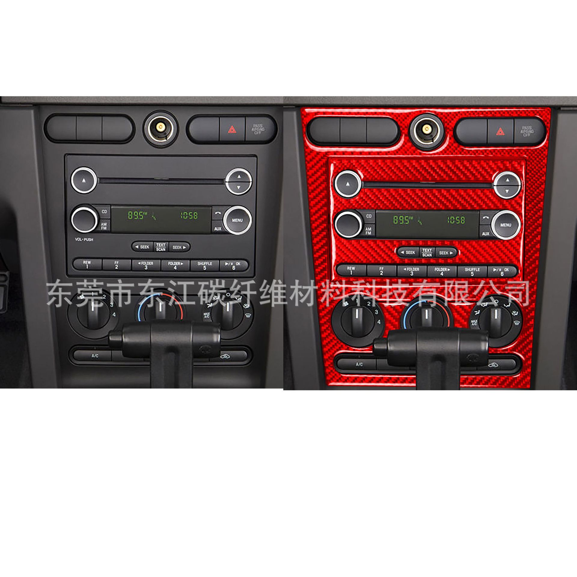- Package Includes: One (1) carbon fiber central control air conditioning CD panel trim. Instantly upgrade your Mustang’s interior with this stylish and protective accessory.