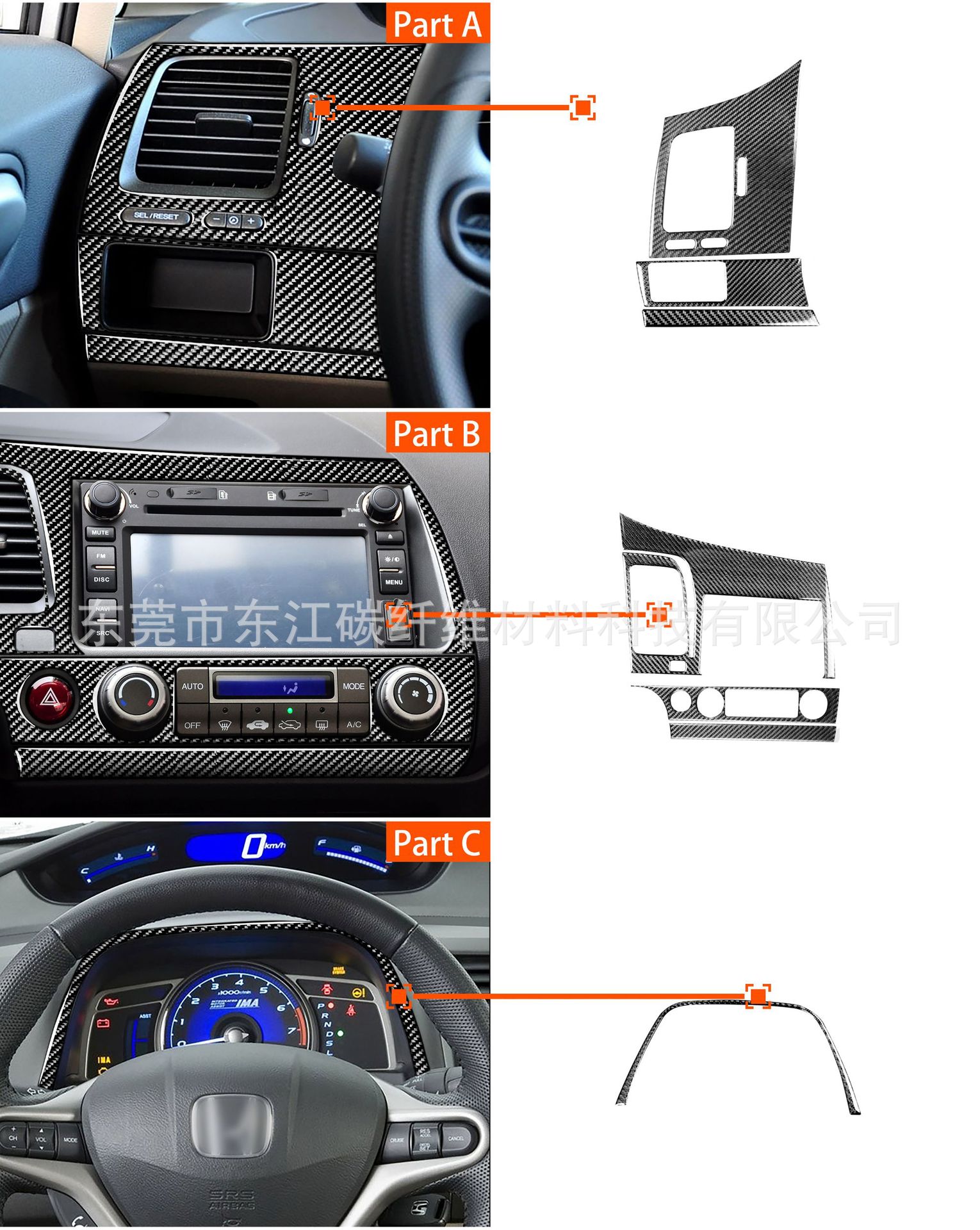 Carbon Fiber Dashboard Trim Kit Interior Decor Modification Accessories for 06-11 Honda Civic 8th Gen