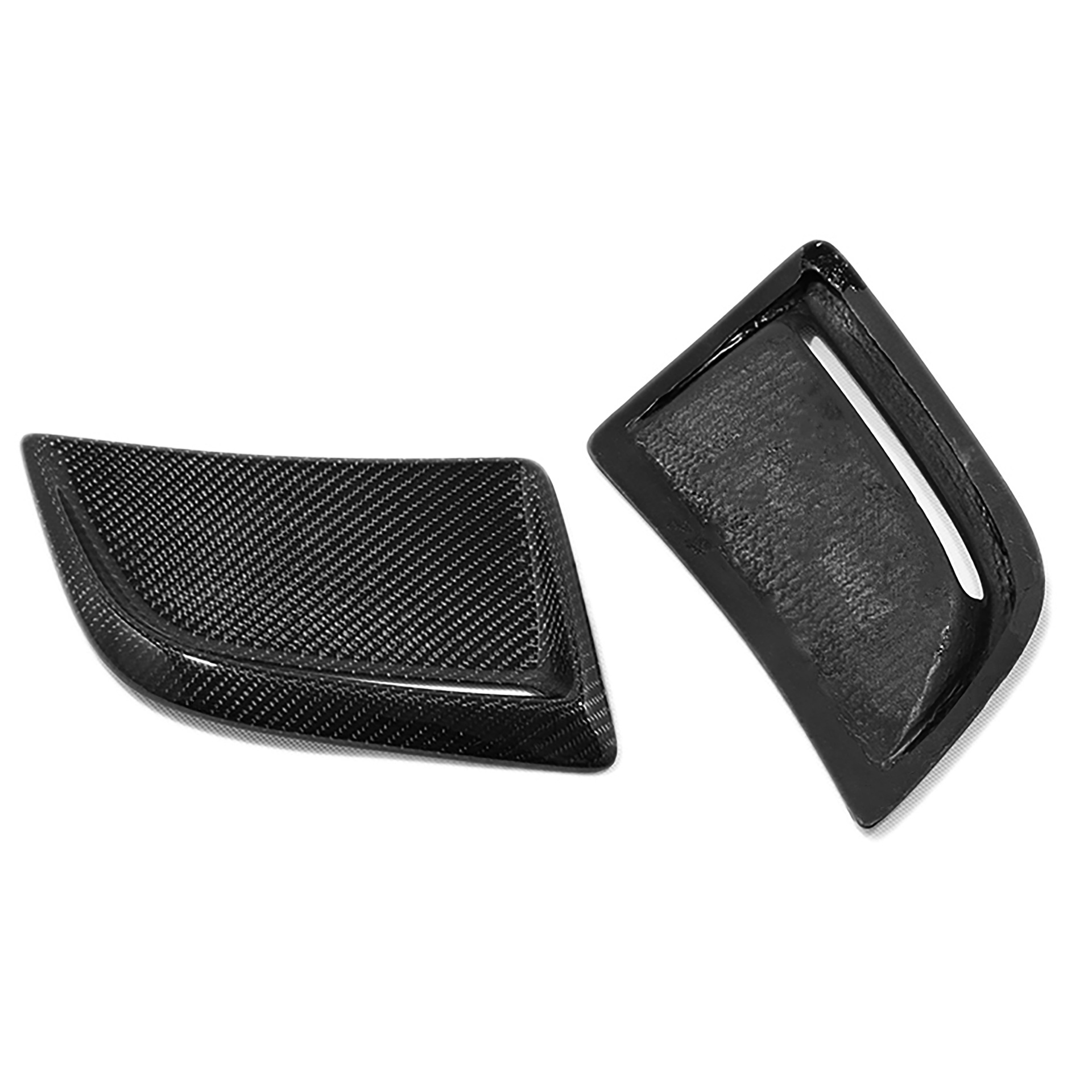 - Complete 2-Piece Set: This package includes a set of two carbon fiber front bumper air vent covers, providing a comprehensive solution to elevate your vehicle’s exterior styling and sportiness.