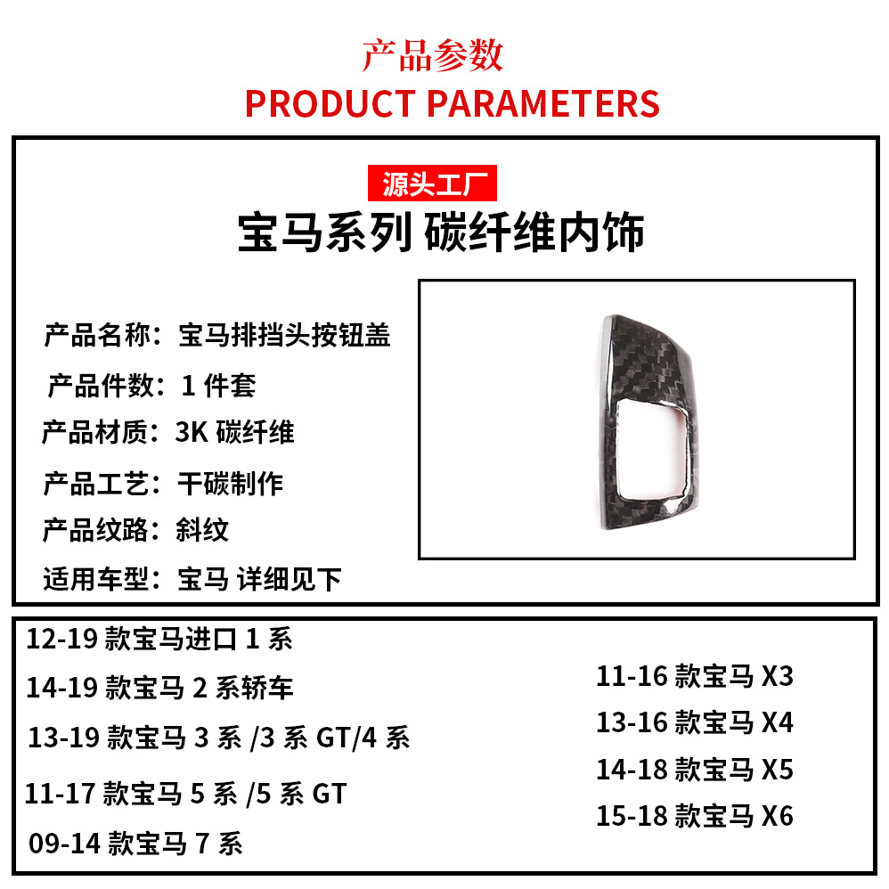 - Package Contents: Includes 1x Carbon Fiber Gear Shift Knob Button Cover. A functional and decorative accessory that enhances both the look and feel of your BMW’s cabin.