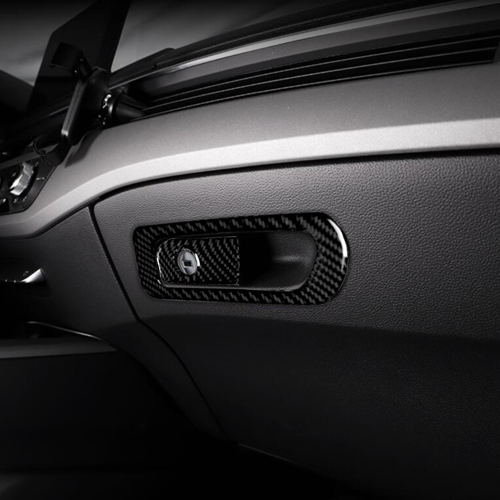 - Enhance Interior Aesthetics: Features a sleek carbon fiber texture, adding a sporty and luxurious touch to your car’s control panel. Instantly upgrades the visual style of your glove box area.