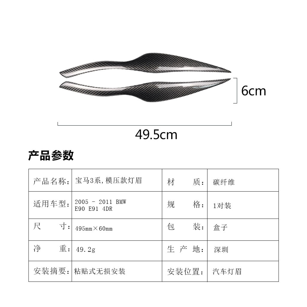 Carbon Fiber Headlight Eyebrow Eyelid Headlamp Cover for BMW 3 Series E90 E91 (2005-2018)