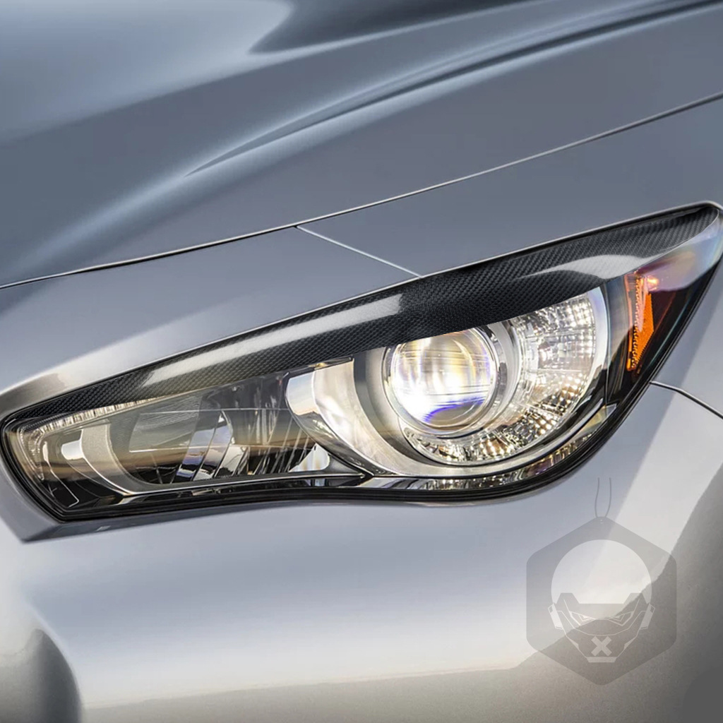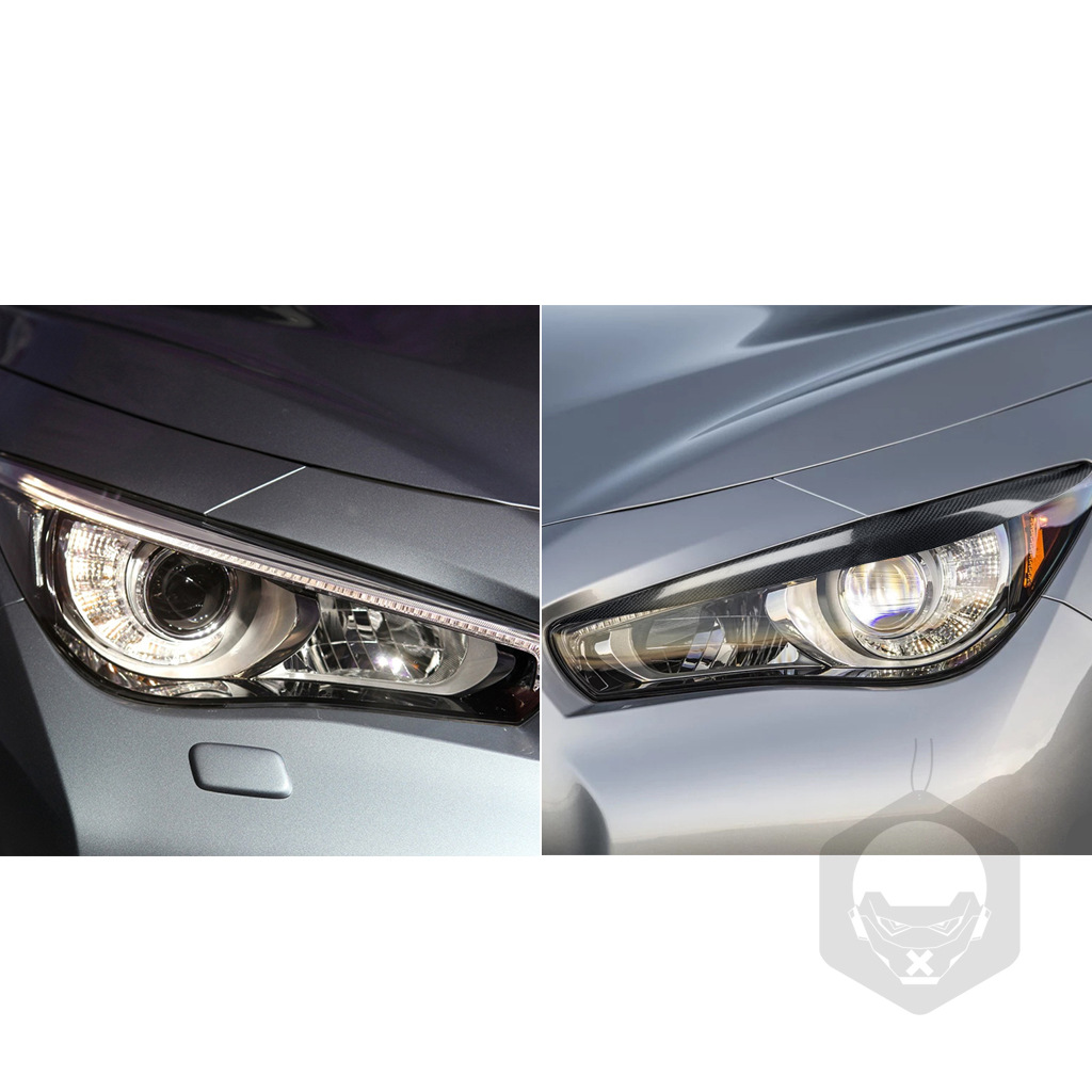- What You Get: This package includes one pair of carbon fiber headlight eyebrow trims, ready to transform the front end of your Infiniti Q50 and enhance its visual impact.