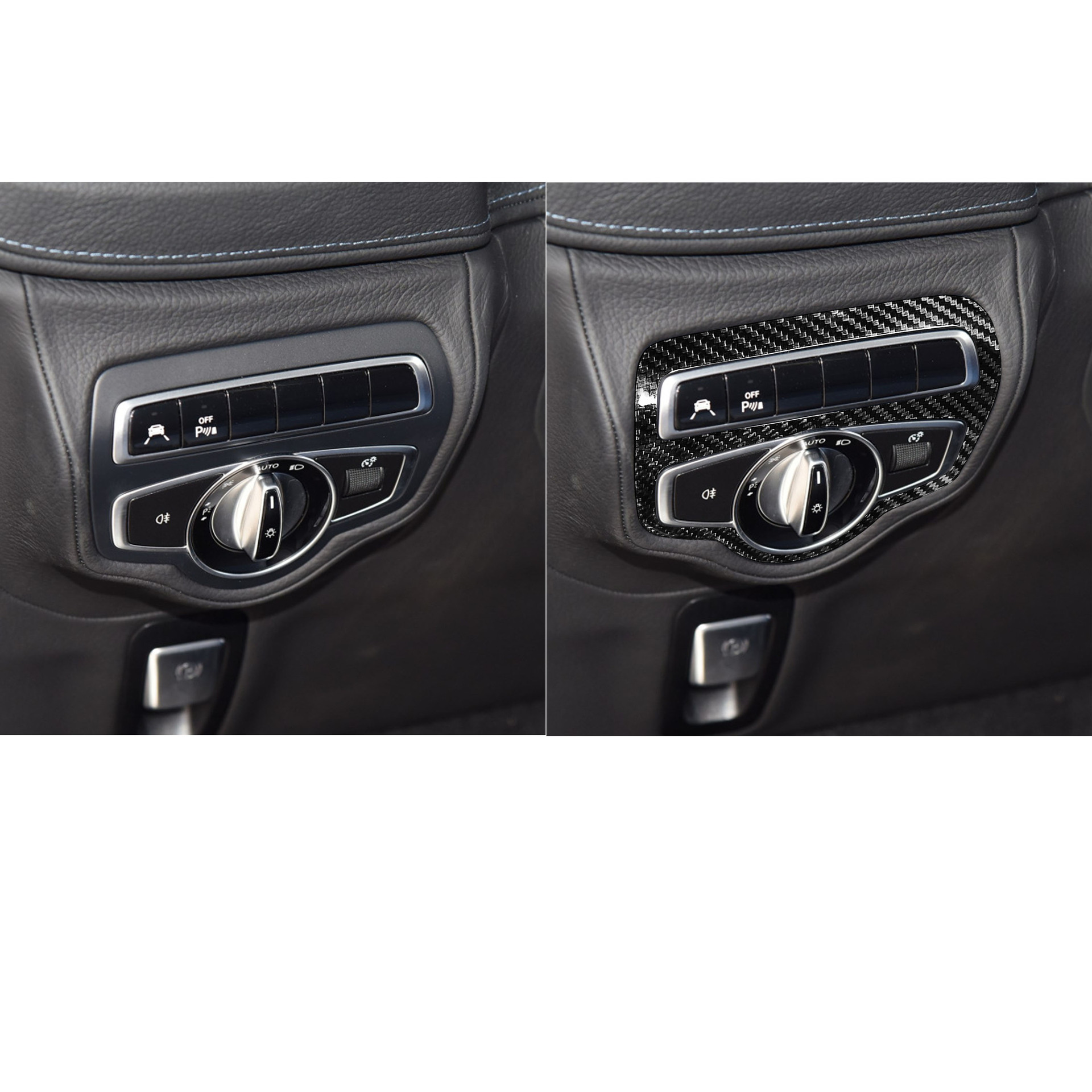 - Package Includes: One (1) carbon fiber headlight switch frame trim. A value-added accessory that enhances both the look and feel of your Mercedes Benz G-Class interior.