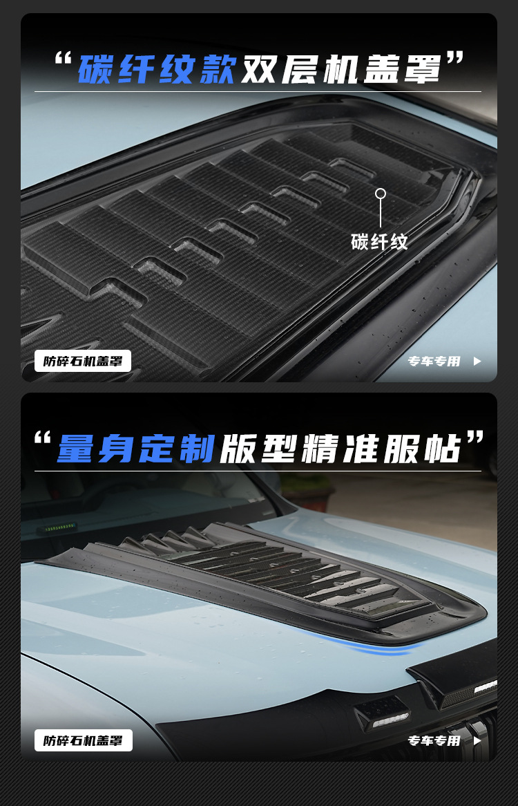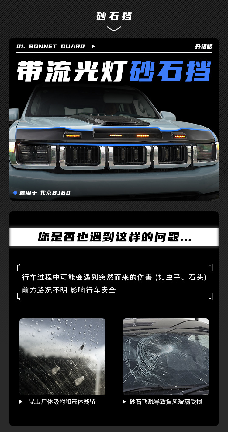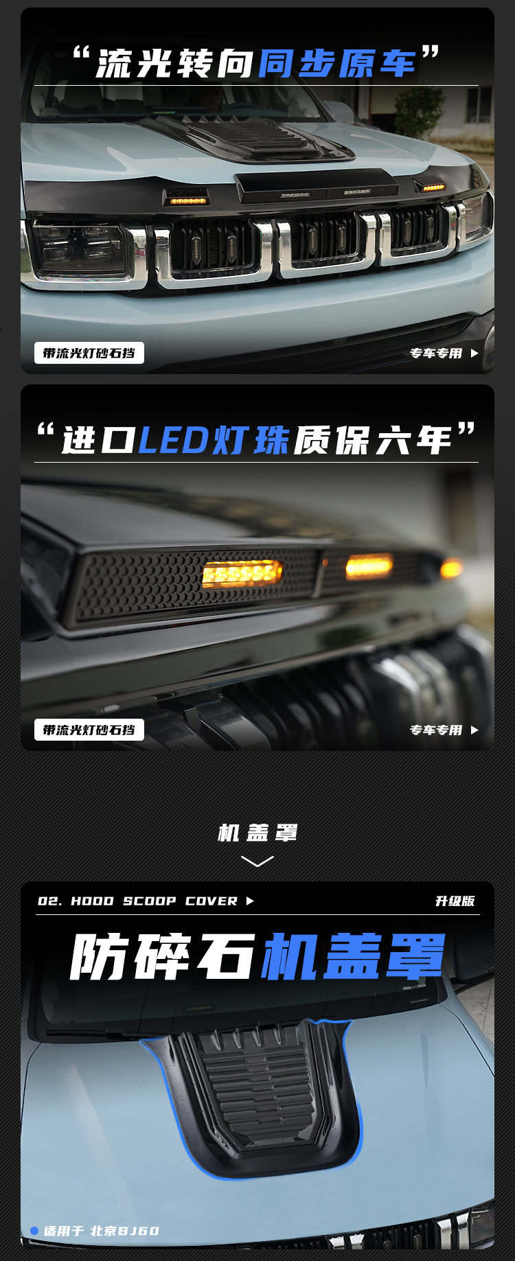 Carbon Fiber Hood Cover & Stone Guard with Flowing Lights for Beijing BJ60 2022-Present