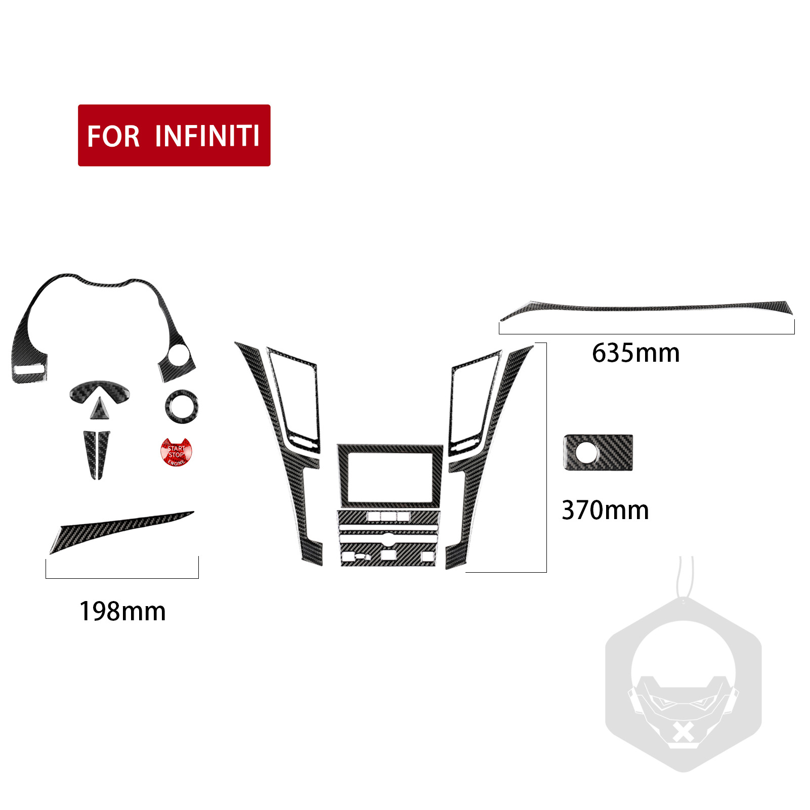 Carbon Fiber Interior Center Console Dashboard Trim Decal Kit for Infiniti Car Interior Modification Accessories 16-Piece Set