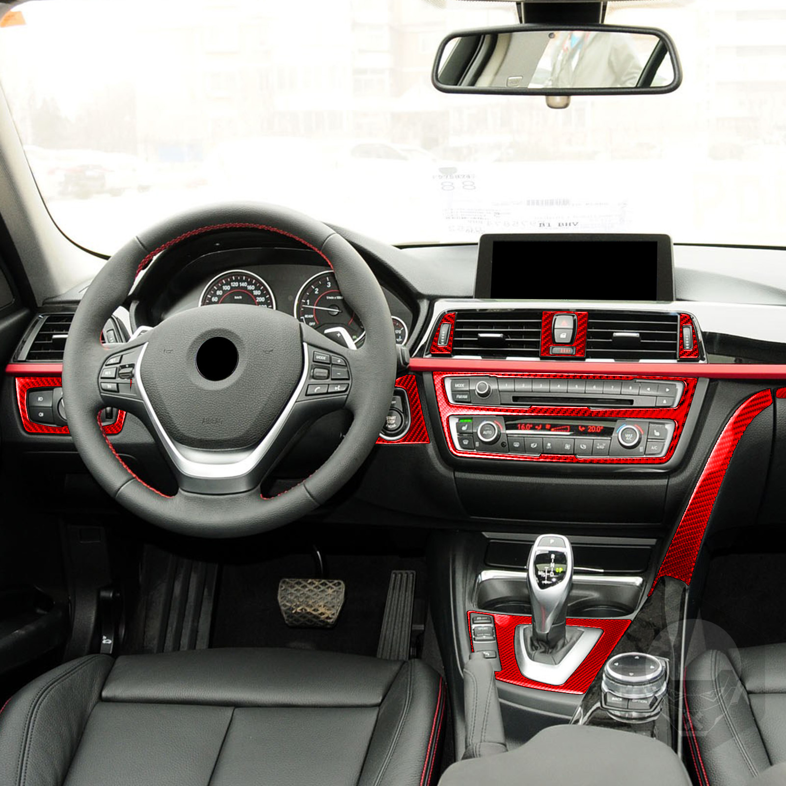 - Enhanced Aesthetic Appeal: Transform your car’s interior with a sporty and luxurious carbon fiber texture. This 15-piece set adds a sophisticated red accent, elevating the overall style of your BMW F30 cabin.