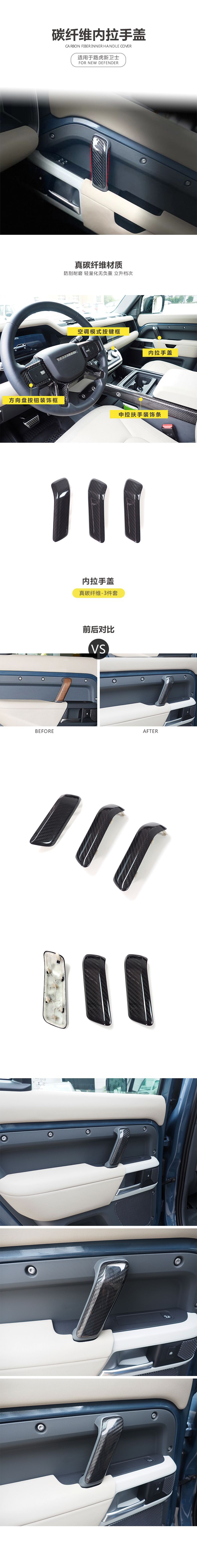 - Package & Value: Includes a complete set of interior door handle cover trims, providing a comprehensive and valuable upgrade to personalize and protect your Defender’s interior.