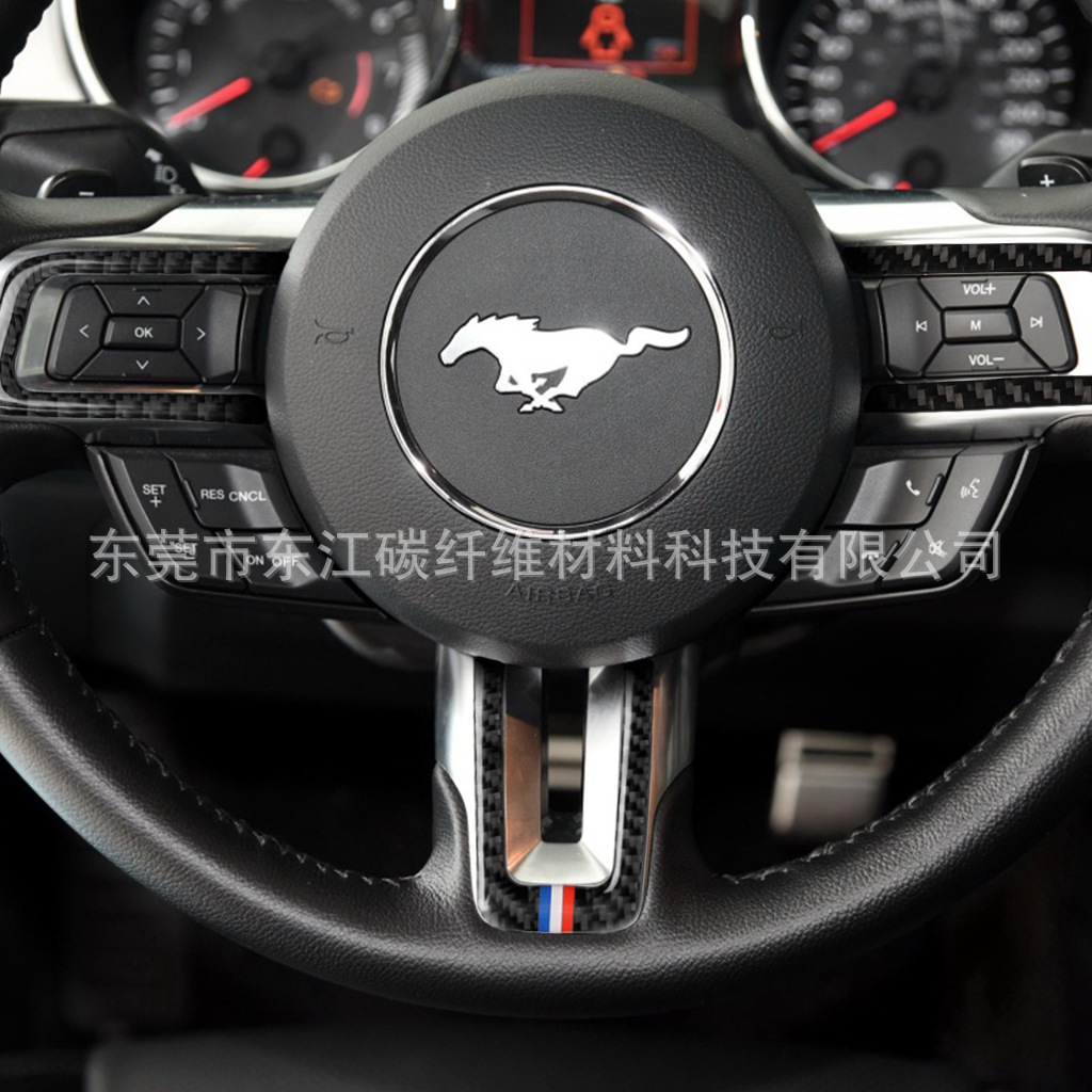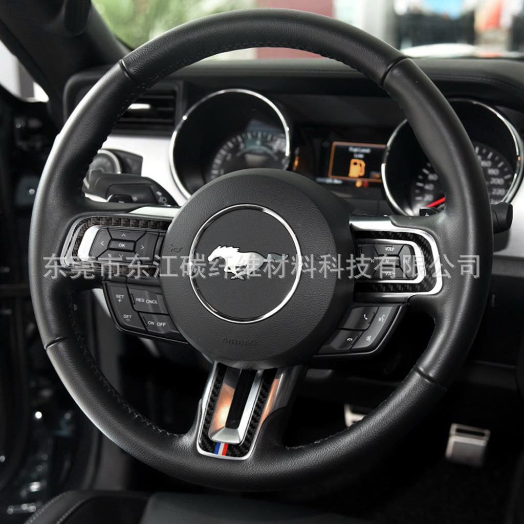 Carbon Fiber Interior Steering Wheel Button Frame Trim for Ford Mustang
