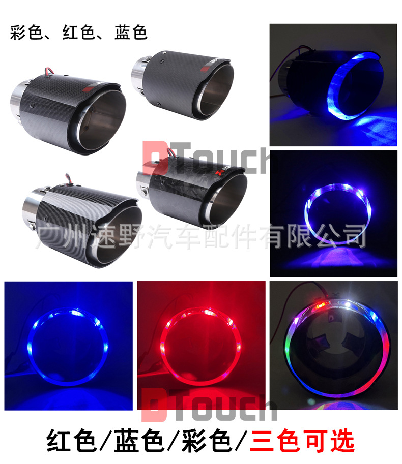 Carbon Fiber LED Exhaust Tip 63mm with Flame Effect for Universal Car [AK-LED-63MM]