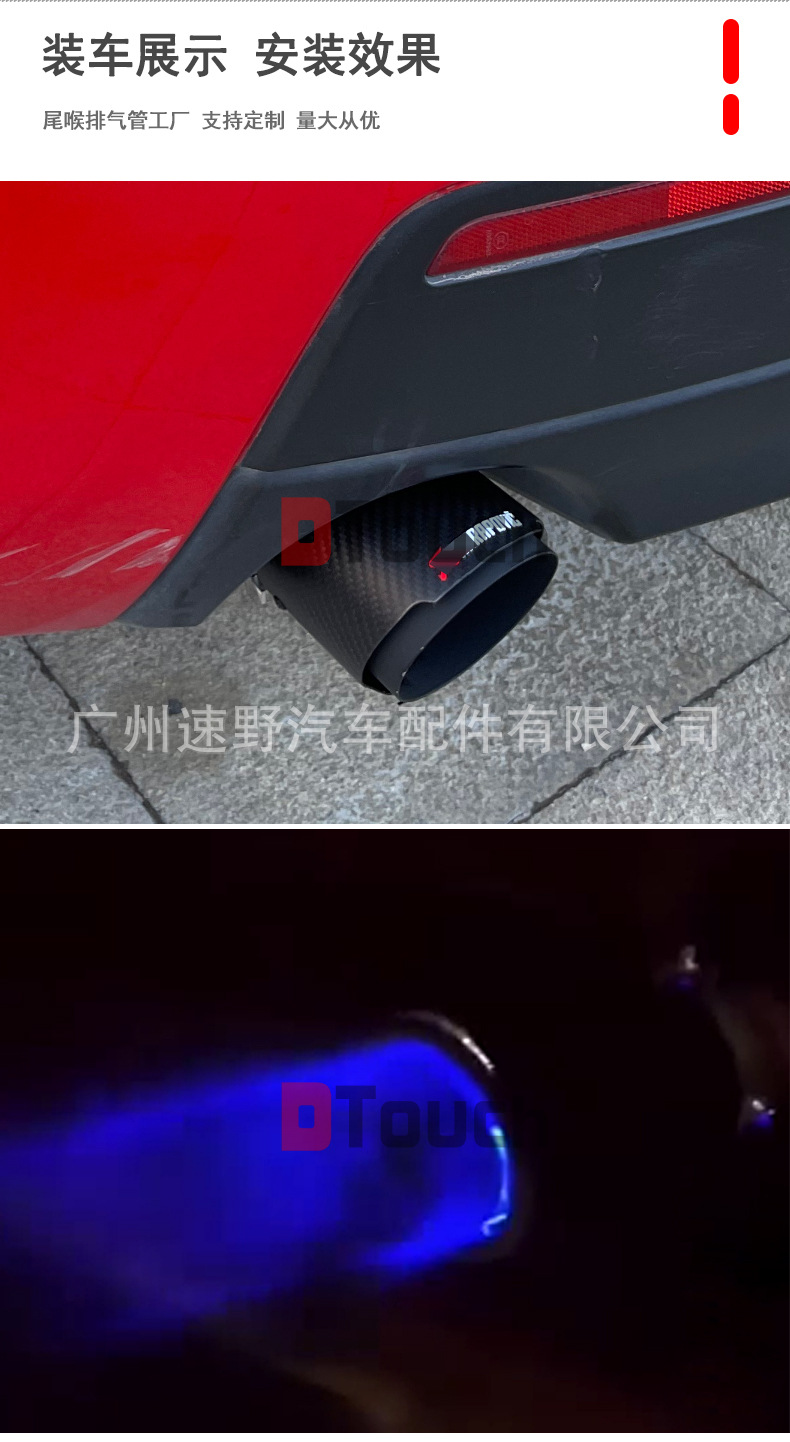 • Dynamic LED Illumination for Enhanced Style: Featuring integrated LED lights, this exhaust tip delivers a captivating visual effect, making your vehicle stand out. The LED illumination adds a unique and sporty aesthetic, perfect for modified enthusiasts looking to upgrade their car’s exterior and create an amazing visual impact, especially at night.