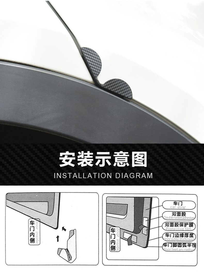 - Stylish Carbon Fiber Texture: Featuring a sleek black carbon fiber look, these protective strips add a sporty and modern aesthetic to your vehicle, enhancing its overall appearance while providing functional protection.