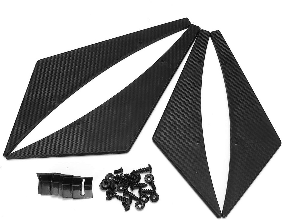 - Carbon Fiber Look Design: Featuring a stylish carbon fiber texture, these decorative wind knives add a sleek and modern aesthetic to your vehicle’s exterior, elevating its visual appeal and giving it a customized racing style.