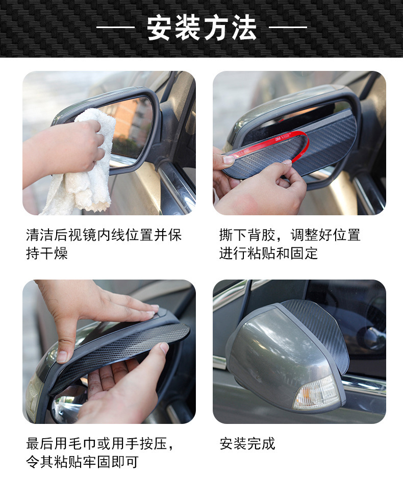 - Easy Installation & Practical Functionality: With a simple adhesive installation method, these visors can be quickly applied without complex tools, effectively preventing rain from obscuring your rearview mirrors.
