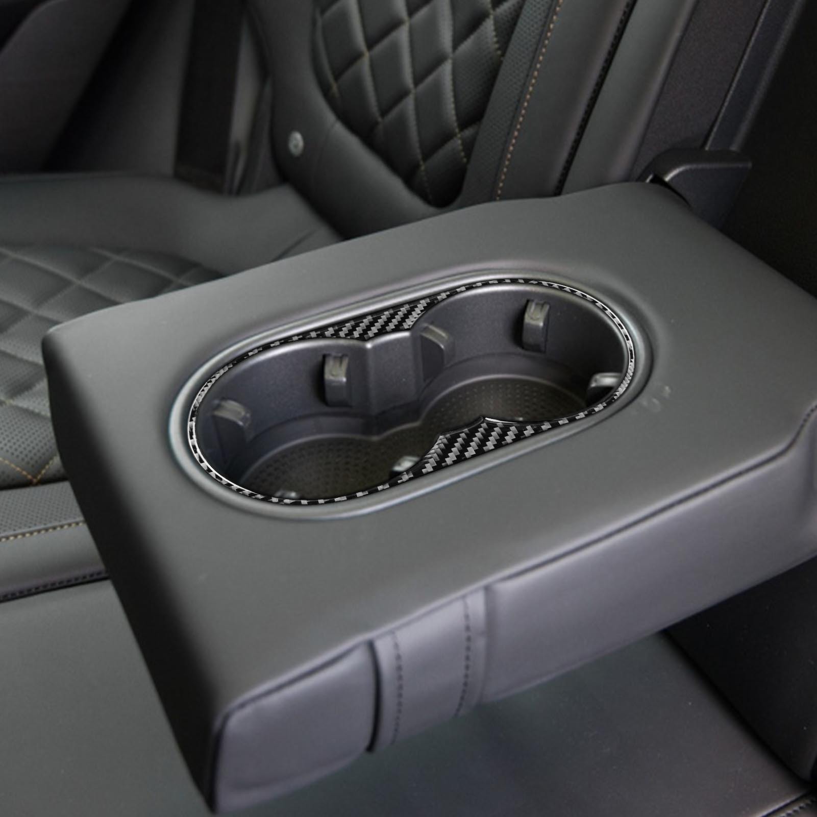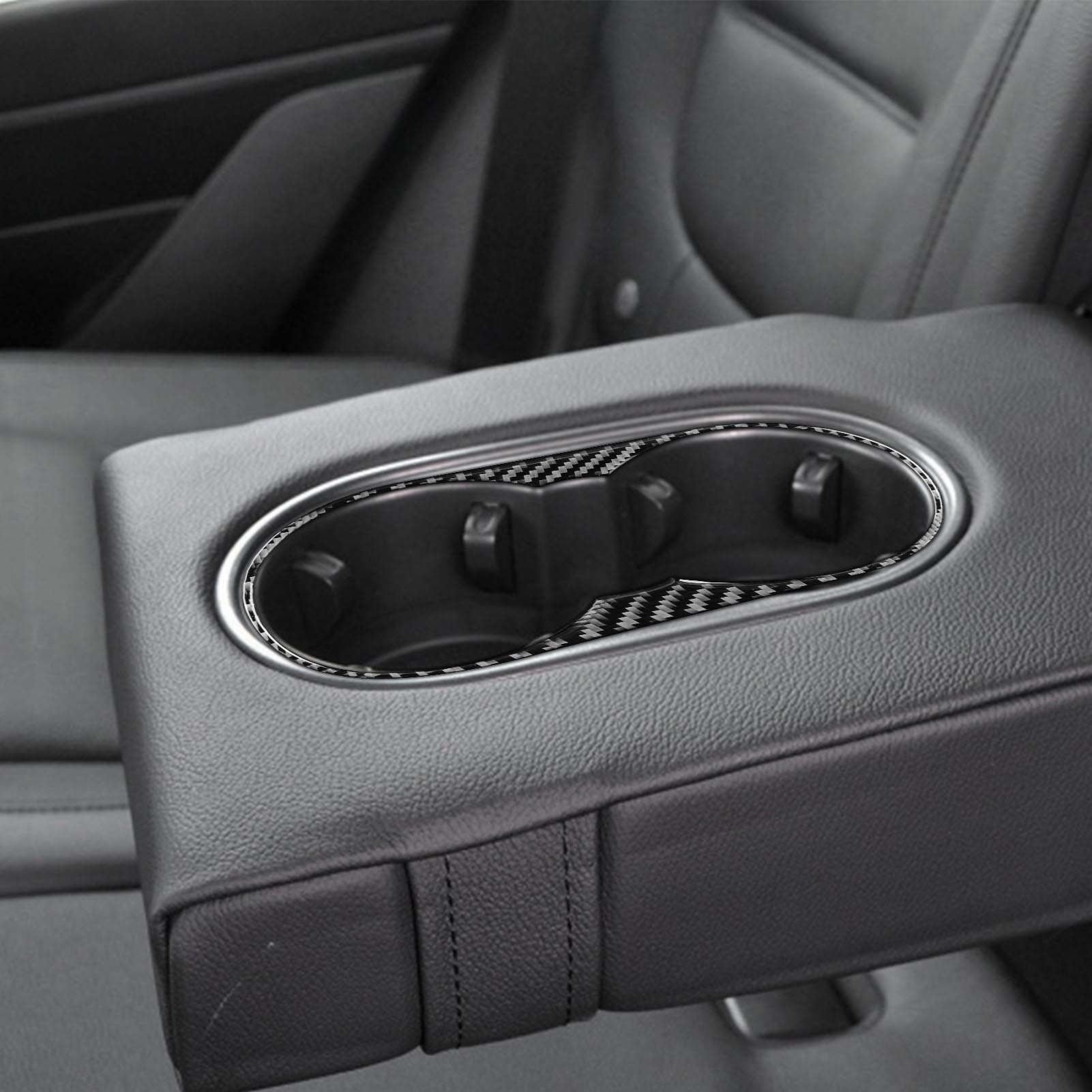 - Package Includes: One (1) carbon fiber rear seat armrest cup holder trim cover, providing a stylish and protective accent for your vehicle’s console.