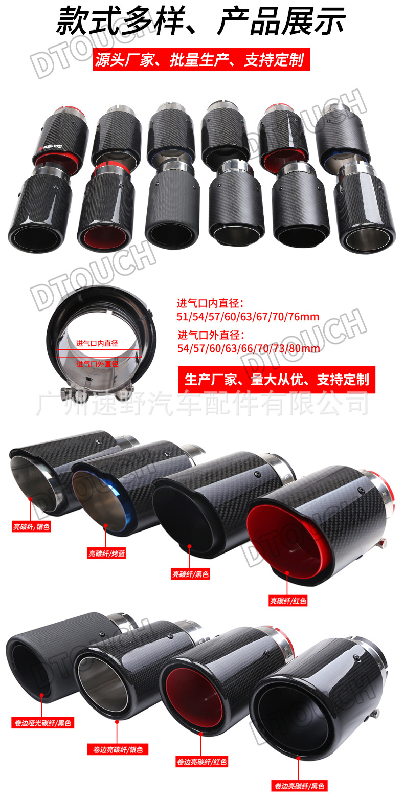 Carbon Fiber Rolled Edge Red Tip Exhaust Muffler (63mm Inlet) for Universal