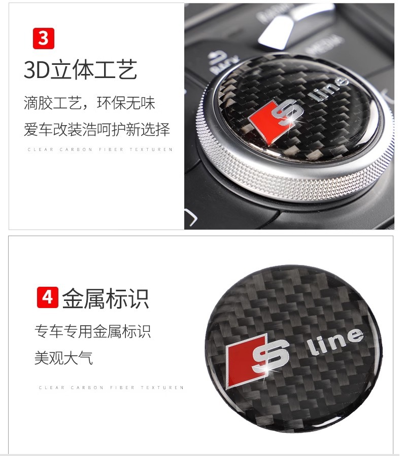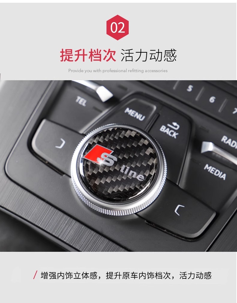 Carbon Fiber S-Line Multimedia Control Knob Trim Sticker for Audi A3 A4L A5 Q2L Q5L 2017-2021