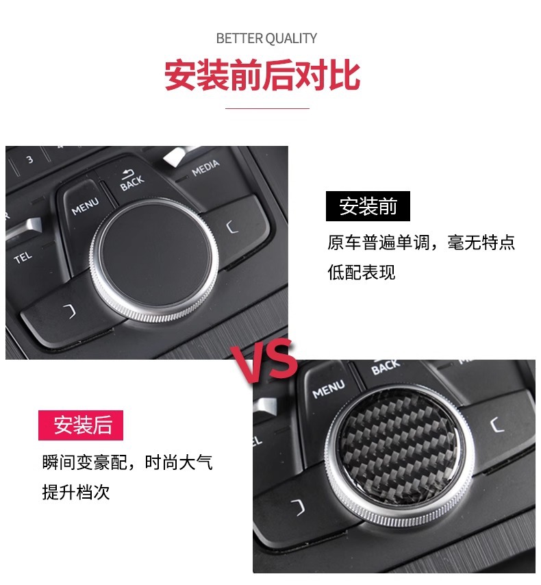 - Direct Fitment: A perfect replacement for the multimedia control knob trim. Compatible with Audi A3, A4L, A5, Q2L, Q5L models from 2017-2021 as seen in the image.