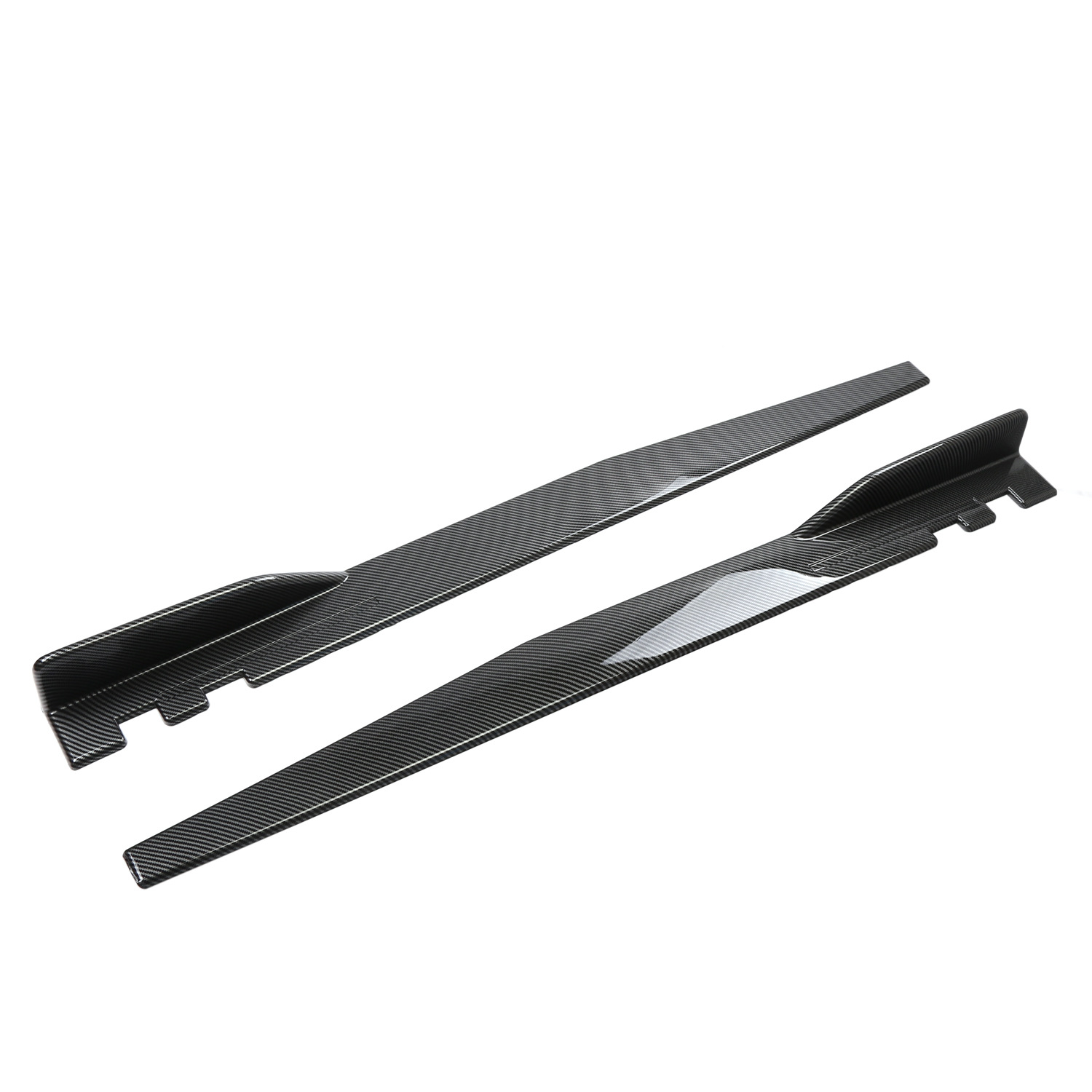 • Crafted from high-quality, durable ABS plastic, available in glossy black or carbon fiber pattern, this side skirt offers exceptional resistance to scratches and impacts, maintaining its premium look for years.