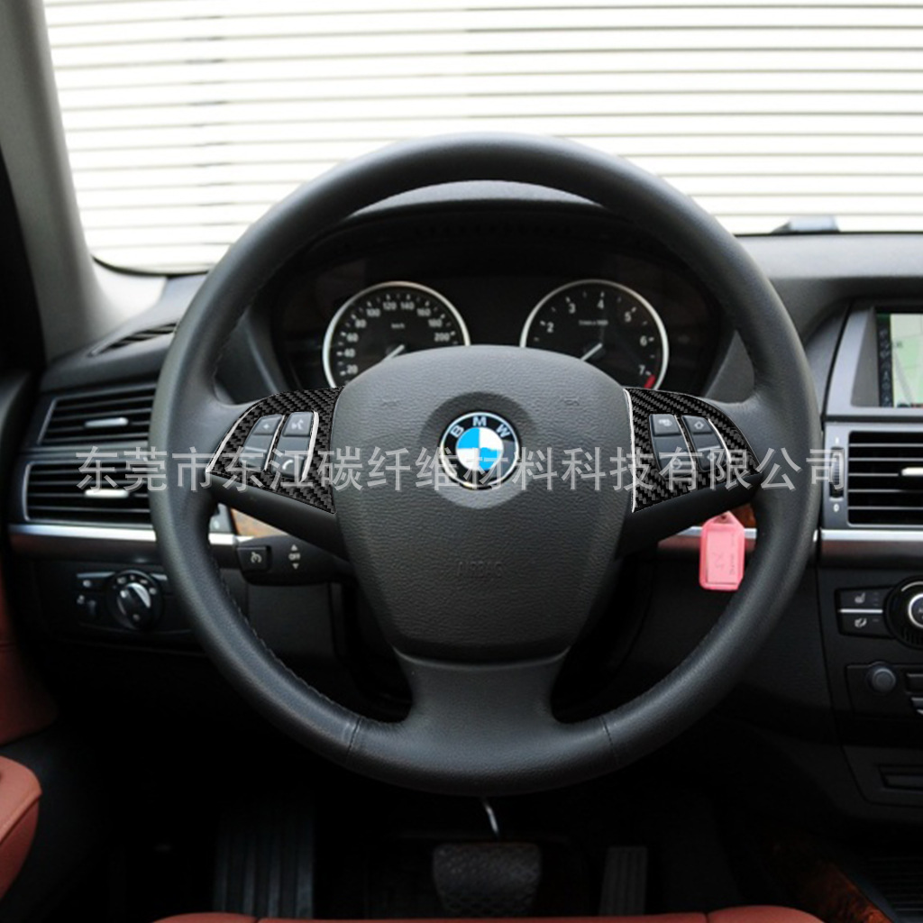 Carbon Fiber Steering Wheel Button Trim Decal for BMW X5 X6 (2008-2013)