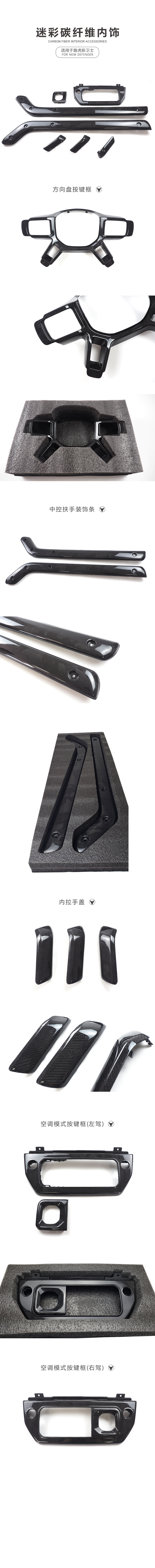 Carbon Fiber Steering Wheel Dashboard Center Console Door Handle Replacement for Land Rover New Defender 90 110