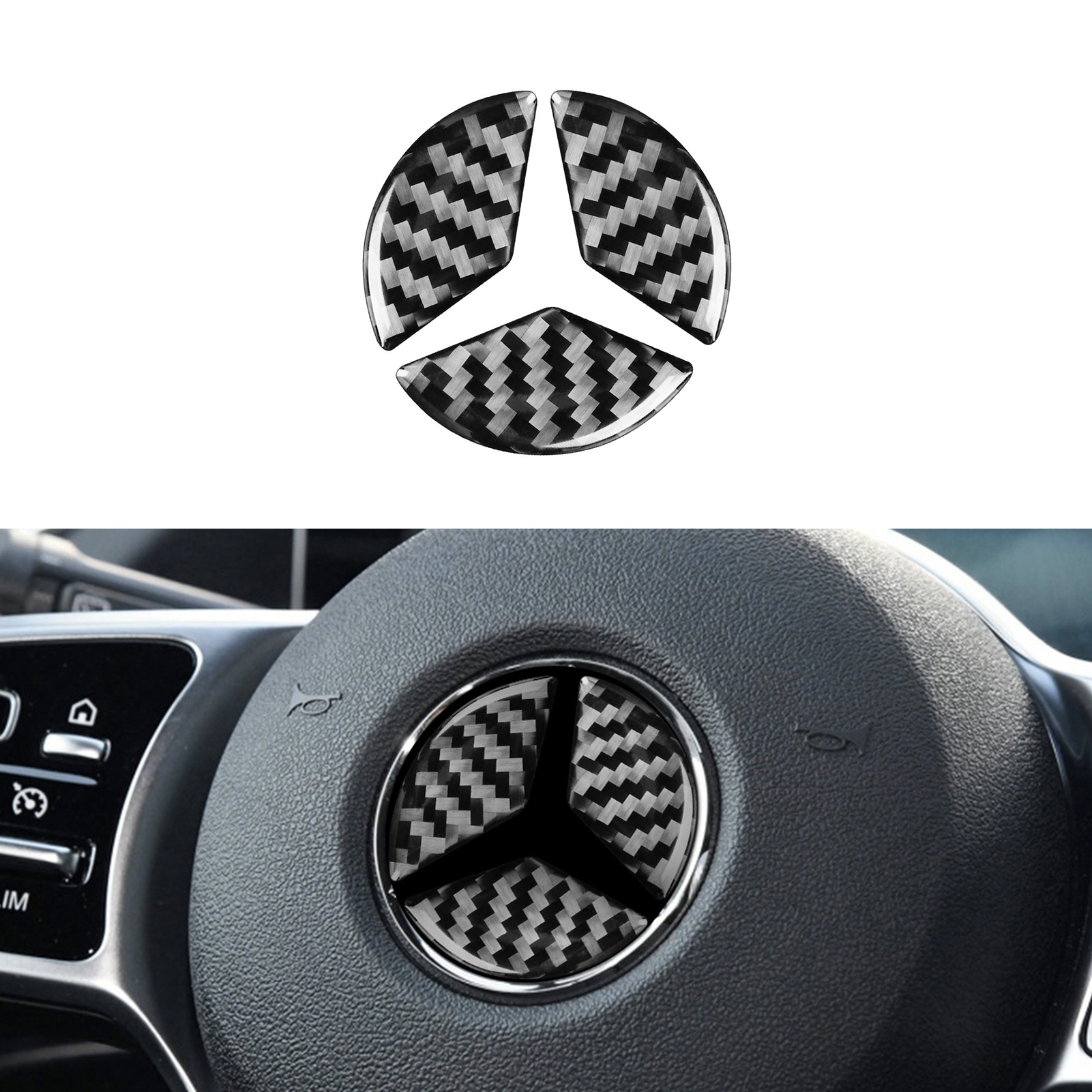 - Package Includes: Each set contains 1 x Carbon Fiber Steering Wheel Logo Decorative Trim Sticker. An ideal accessory to personalize and protect your vehicle’s original logo.