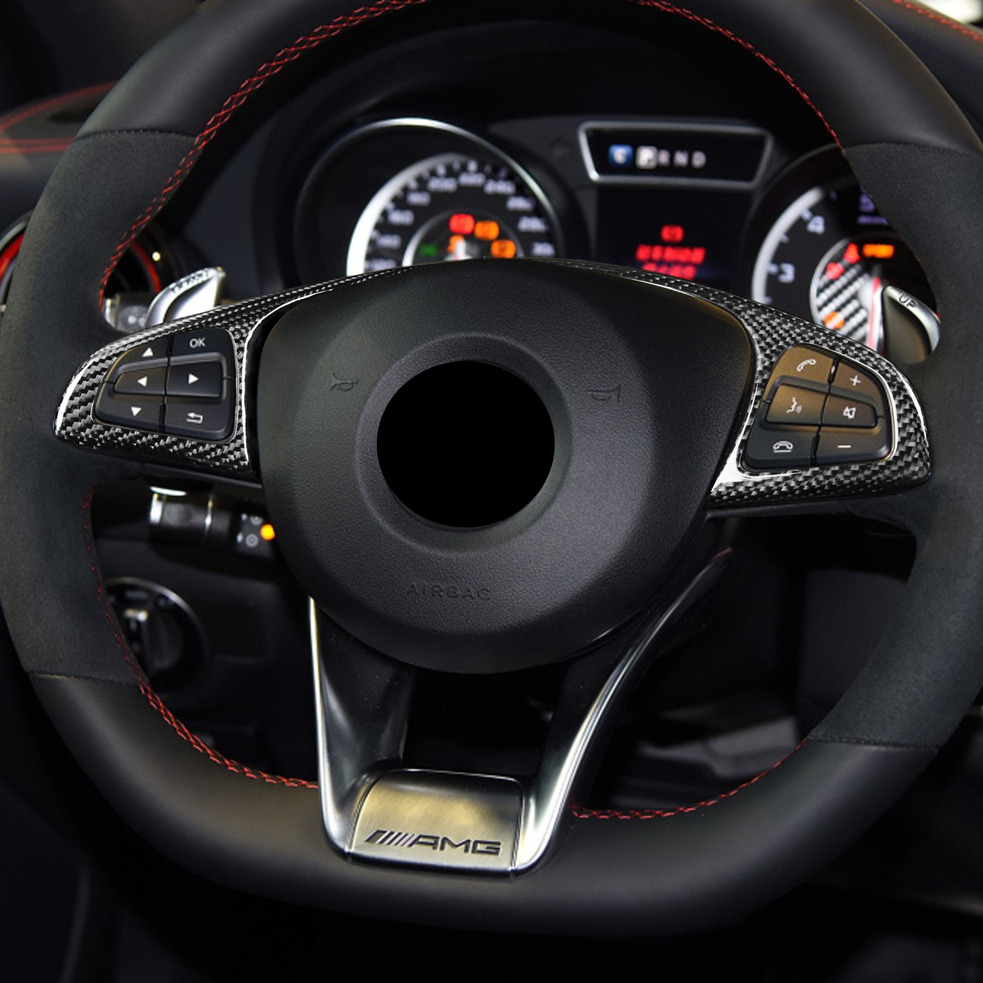 Carbon Fiber Steering Wheel Trim Cover AMG Style for Mercedes-Benz W205 C63 C63S GLA45 (2015-2020)