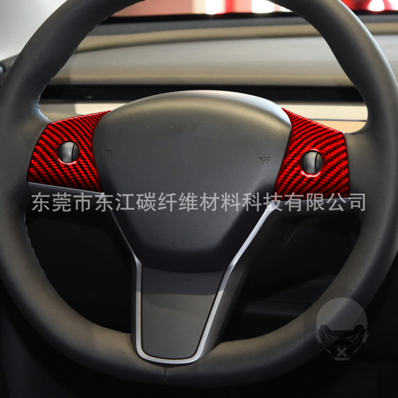 Carbon Fiber Steering Wheel Trim Decal Cover for Tesla Model 3, Model Y (2017-2022)