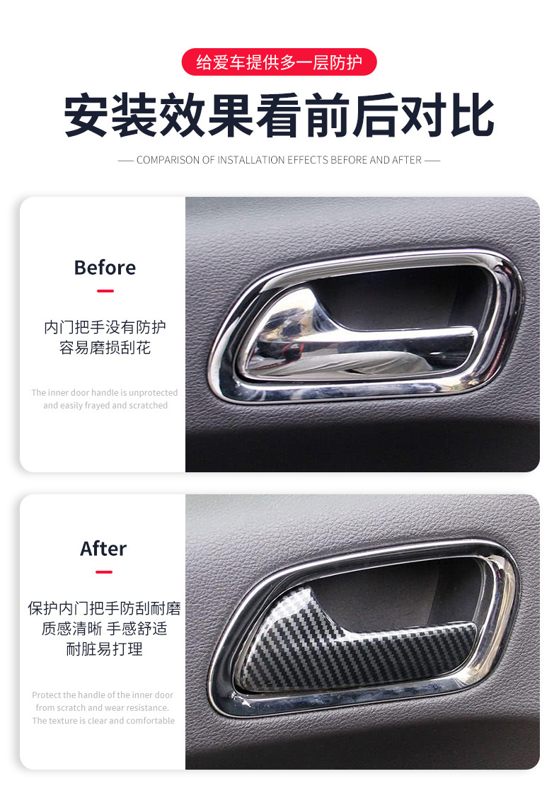 - Package Includes: Comes as a complete set of door handle bowl decoration trims (quantity depends on vehicle configuration, typically 4 pieces), enhancing both aesthetics and protection for your vehicle.