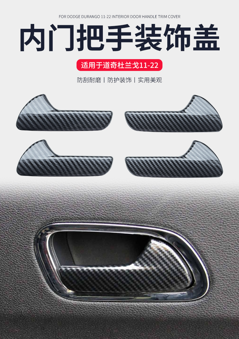 Carbon Fiber Style Interior Door Handle Bowl Trim for Dodge Durango (2014-2022)