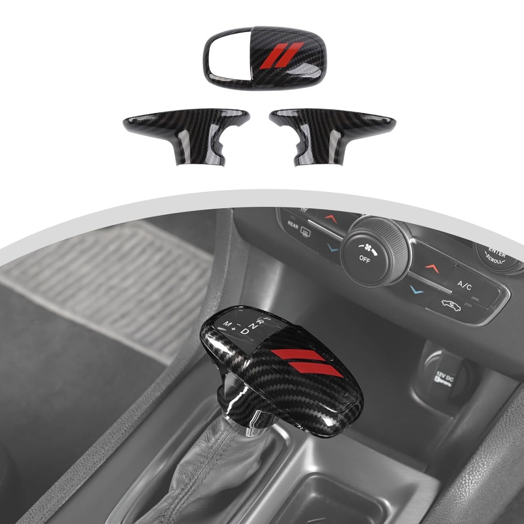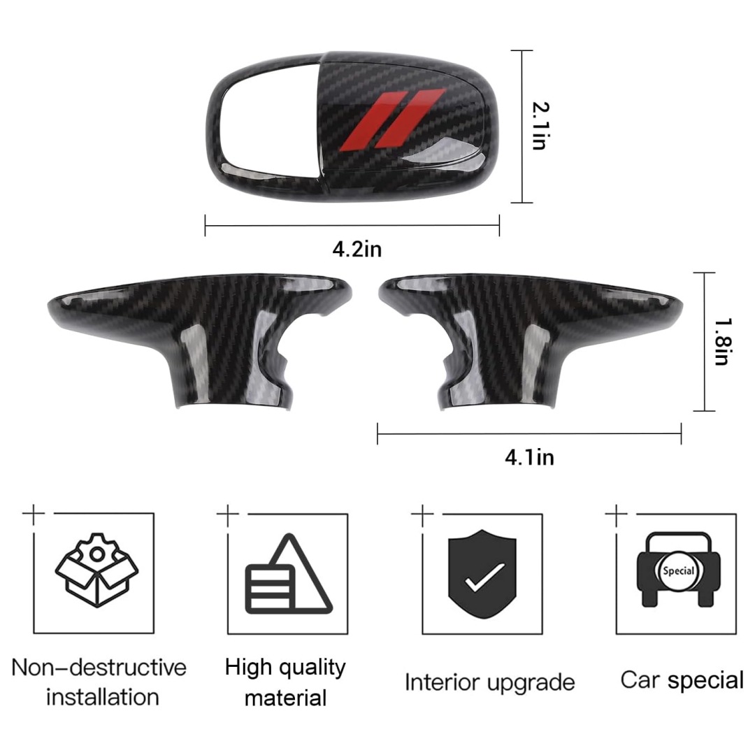Carbon Fiber Style Interior Exterior Navigation Steering Wheel Shifter Trim for Dodge Challenger
