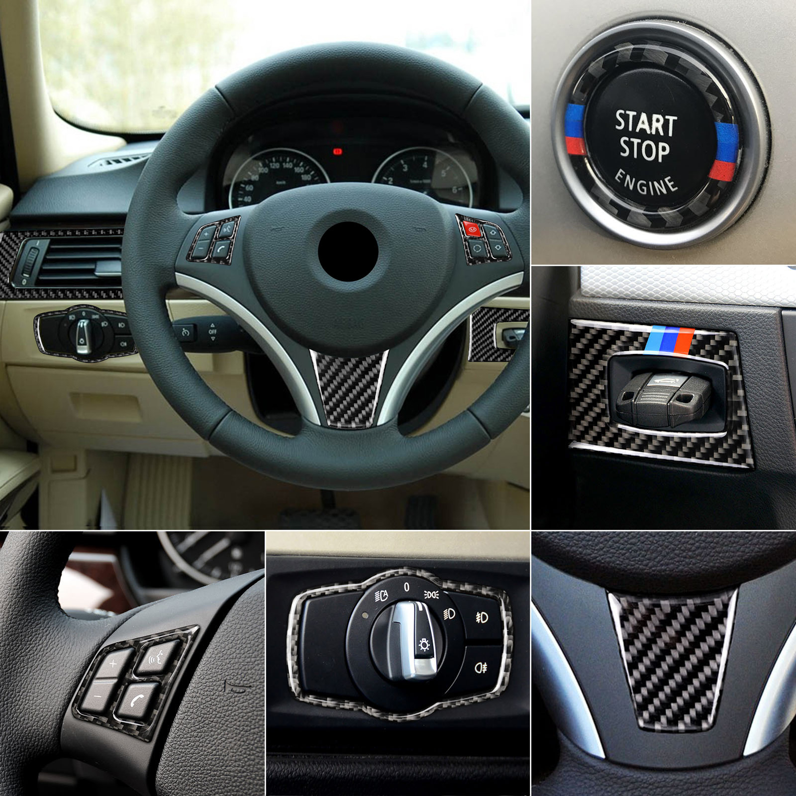 Carbon Fiber Style Steering Wheel B-Type Decoration Trim for BMW 3 Series 05-12 E90 E92