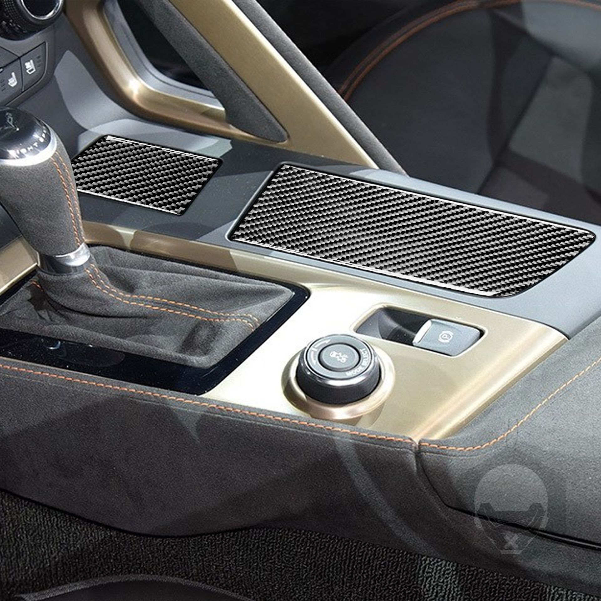 Carbon Fiber Style Water Cup Holder Panel Trim for Chevrolet Corvette C7 2014-2019 Interior
