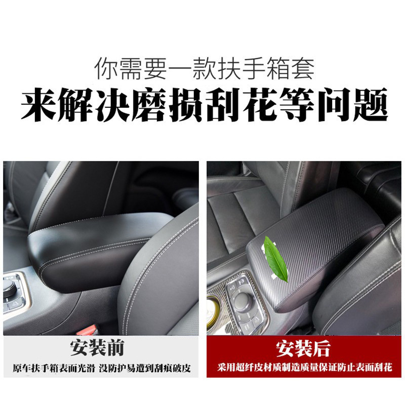 - Superior Construction & Material: Crafted from high-quality carbon fiber texture material and super fiber leather, as seen in the image, providing a luxurious look and durable protection for your armrest.