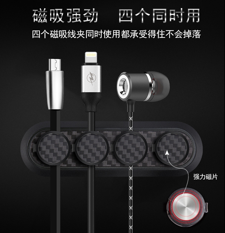 Carbon Fiber Texture Magnetic Cable Organizer Clip Data Cable Tie Desktop Wire Holder