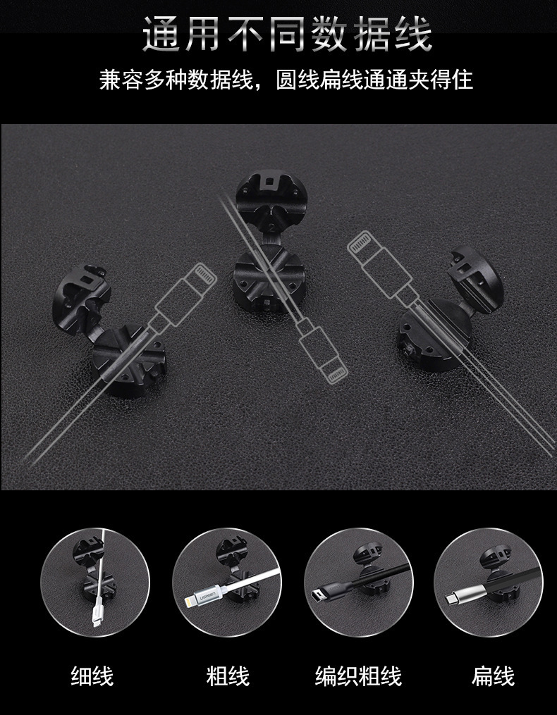 - Universal Compatibility: Designed for wide application, this cable organizer seamlessly works with various data cables and headphone cables, ensuring a tidy desktop for your devices.