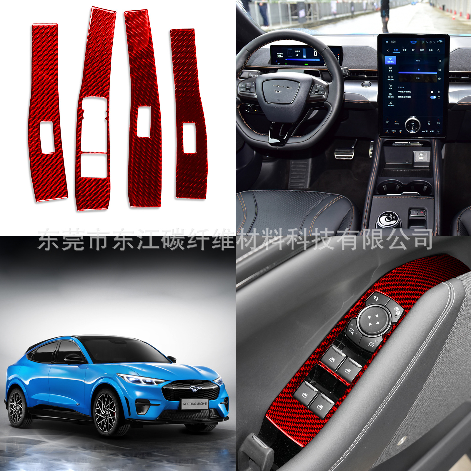 Carbon Fiber Window Lift Panel Trim Interior Modification for Ford Mustang Mach-E 2021