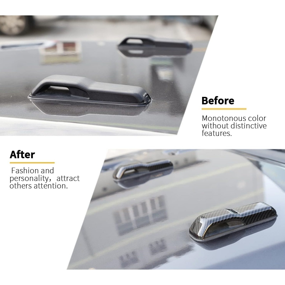 - Stylish Carbon Fiber Grain: Features a sleek carbon fiber grain finish, instantly upgrading your vehicle’s exterior aesthetics and adding a sporty, luxurious touch.